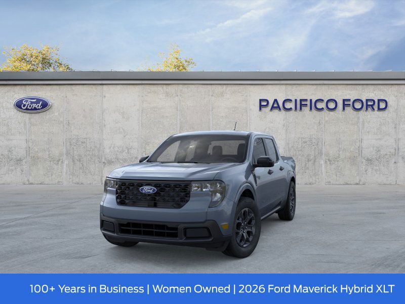 2026 Ford Maverick Azure Gray Metallic Tri-Coat XLT 2.5L I-4 Hybrid. AWD CVT 2.5L I-4 Hybrid Pacifico Ford is proud to present you with another great new Ford. This 2026 Ford Maverick XLT is loaded with the following Factory Options: Equipment Group 301A (2.91 Axle Ratio, Radio: AM/FM Stereo with 6 Speakers, SiriusXM with 360L, SYNC 4 with Enhanced Voice Recognition, Unique Cloth Front Bucket Seats, and Wheels: 17" Carbonized Gray Painted Aluminum), Ford Connectivity Package (1-Year Included), Internet access capable: 5G Modem - Ford Connectivity Package, XLT Luxury Package (Heated Mirror with Painted Black Skull Caps, Heated Seats, LED Box Lighting, Pro Power Onboard - 400W, Remote Start System, and Soft Vinyl Wrapped Heated Steering Wheel), 2.5L I-4 Hybrid, 4-Wheel Disc Brakes, 6 Speakers, ABS brakes, Air Conditioning, Alloy wheels, AM/FM radio: SiriusXM with 360L, Apple CarPlay/Android Auto, Auto High Beams, Auto High-beam Headlights, Automatic temperature control, Bed Tray Liner, Brake assist, Bumpers: body-color, Compass, Delay-off headlights, Driver door bin, Driver vanity mirror, Dual front impact airbags, Dual front side impact airbags, Electronic Stability Control, Emergency communication system: SYNC 4 911 Assist, Exterior Parking Camera Rear, Four wheel independent suspension, Front anti-roll bar, Front Bucket Seats, Front Center Armrest, Front reading lights, Fully automatic headlights, Illuminated entry, Intersection Assist, Knee airbag, Lane-Keeping System, Low tire pressure warning, Occupant sensing airbag, Outside temperature display, Overhead airbag, Overhead console, Panic alarm, Passenger door bin, Passenger vanity mirror, Power door mirrors, Power steering, Power windows, Pre-Collision Assist with Automatic Emergency Braking, Radio data system, Rear anti-roll bar, Rear seat center armrest, Rear step bumper, Rear-View Camera, Remote keyless entry, Security system, Speed control, Speed-sensing steering, Steering wheel mounted audio controls, Telescoping steering wheel, Tilt steering wheel, Traction control, and Trip computer. Recent Arrival!