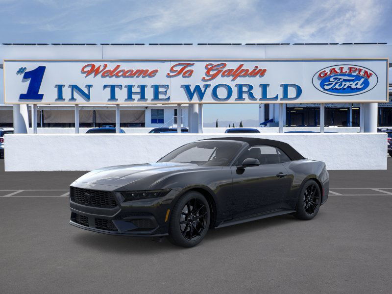 Come down to Galpin Ford to see this beautiful New arrival. This 2026 Ford Mustang EcoBoost® is an excellent vehicle at an affordable price! This Ford Mustang includes premium installed options such as Mustang Nite Pony Package, Equipment Group 101A High Package and Anti-Theft Package. Coming well equipped with options such as Automatic Emergency Braking, USB Port, Lane Departure Warning, Dual Climate Control, Convertible, Keyless Start, Rain Sensing Front Wipers, Backup Camera, Heated Seats, Keyless Entry, Turbocharged, Blind Spot Monitor, WIFI Hotspot, Traction Control and Stability Control. With a Shadow Black exterior, this vehicle will stand out from all the others. We are ready to answer any questions you may have. The Team at Galpin has outstanding customer service that will leave you completely satisfied. We know that you have high expectations, and we enjoy the challenge of meeting and exceeding them! Come by the dealership today to find the vehicle you have been searching for at the price you can afford!