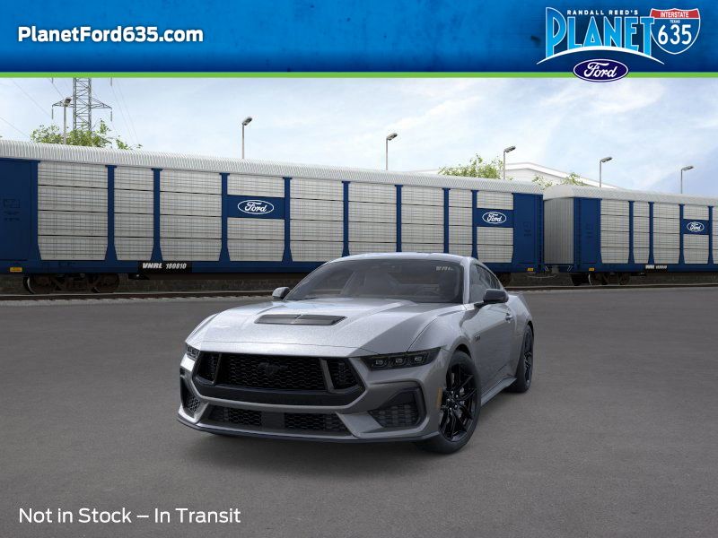 Gray 2026 Ford Mustang GT GT 5.0L V8 Ti-VCT RWD Mustang Nite Pony Package (Black GT, 5.0 and Pony Badges, Black Mirror Caps, and Painted Black Roof), 3.55 Limited Slip Rear Axle, 4-Wheel Disc Brakes, 6 Speakers, ABS brakes, Active Valve Performance Exhaust, Air Conditioning, Alloy wheels, AM/FM radio, AM/FM Stereo, Auto High-beam Headlights, Automatic temperature control, Brake assist, Bumpers: body-color, Cloth Bucket Seats, Compass, Delay-off headlights, Driver door bin, Driver vanity mirror, Dual front impact airbags, Dual front side impact airbags, Electronic Stability Control, Emergency communication system: 911 Assist, Exterior Parking Camera Rear, Floor Mats, 1st Row, Black with City Silver GT Logo, Four wheel independent suspension, Front anti-roll bar, Front Bucket Seats, Front Center Armrest, Front dual zone A/C, Front reading lights, Fully automatic headlights, Illuminated entry, Knee airbag, Leather Shift Knob, Leather steering wheel, Low tire pressure warning, Occupant sensing airbag, Outside temperature display, Overhead airbag, Overhead console, Panic alarm, Passenger door bin, Passenger vanity mirror, Power door mirrors, Power steering windows