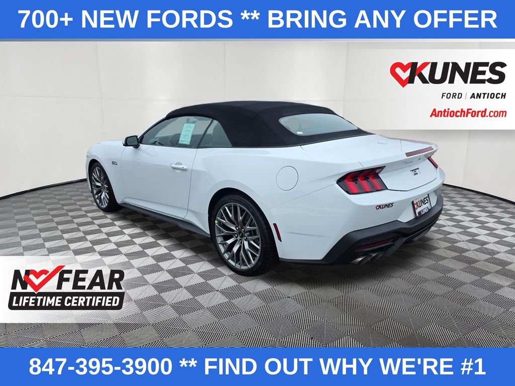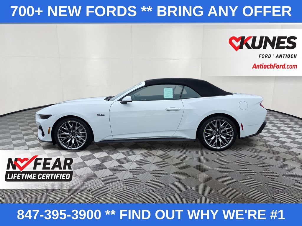 2026 Ford Mustang GT Premium 5.0L V8 Ti-VCT RWD Automatic 2D Convertible Oxford White. Also included with every new vehicle we sell: Lifetime "No Fear" Warranty, first oil change, and at home courtesy delivery! We pride ourselves on honesty and integrity, but please note that mistakes or misprints due to human error are possible. Find out why our dealerships have won DealerRater.com Dealer of the Year a whopping 10 times! Call, email, or live chat with one of our friendly sales professionals now to schedule your test drive!