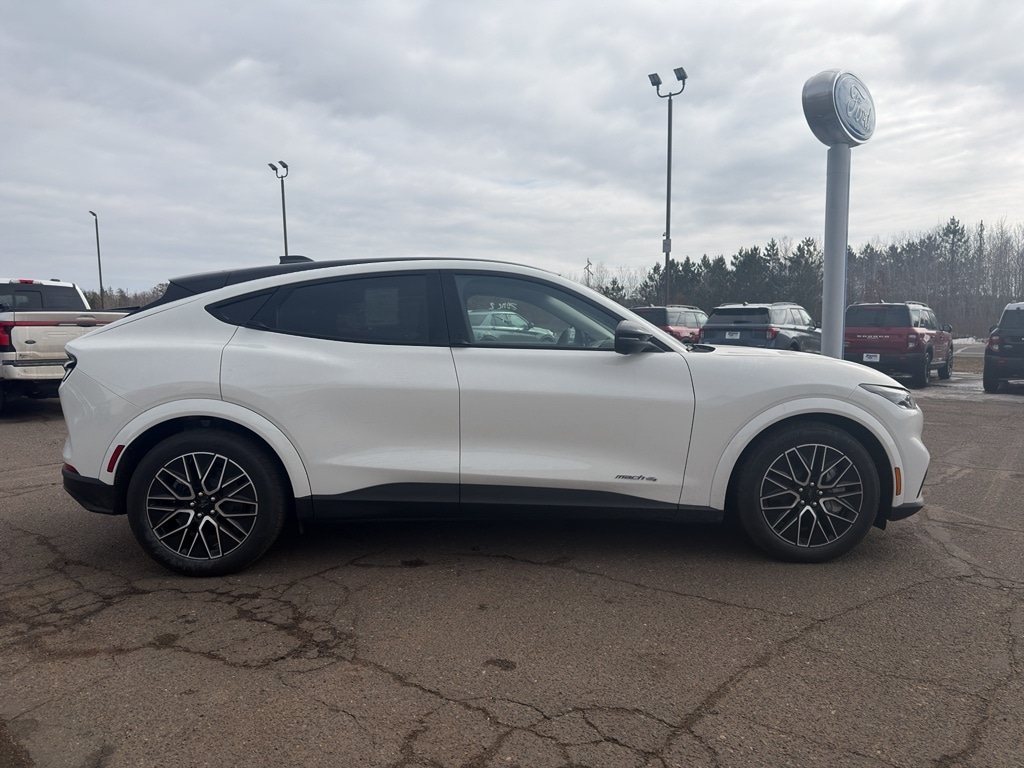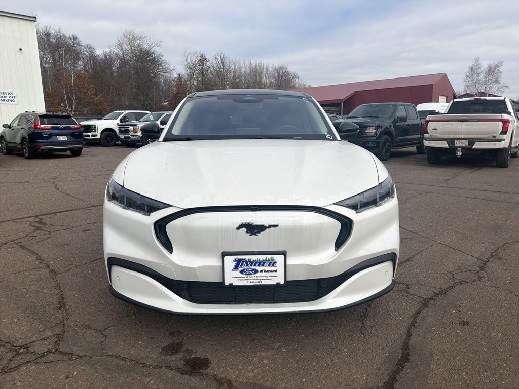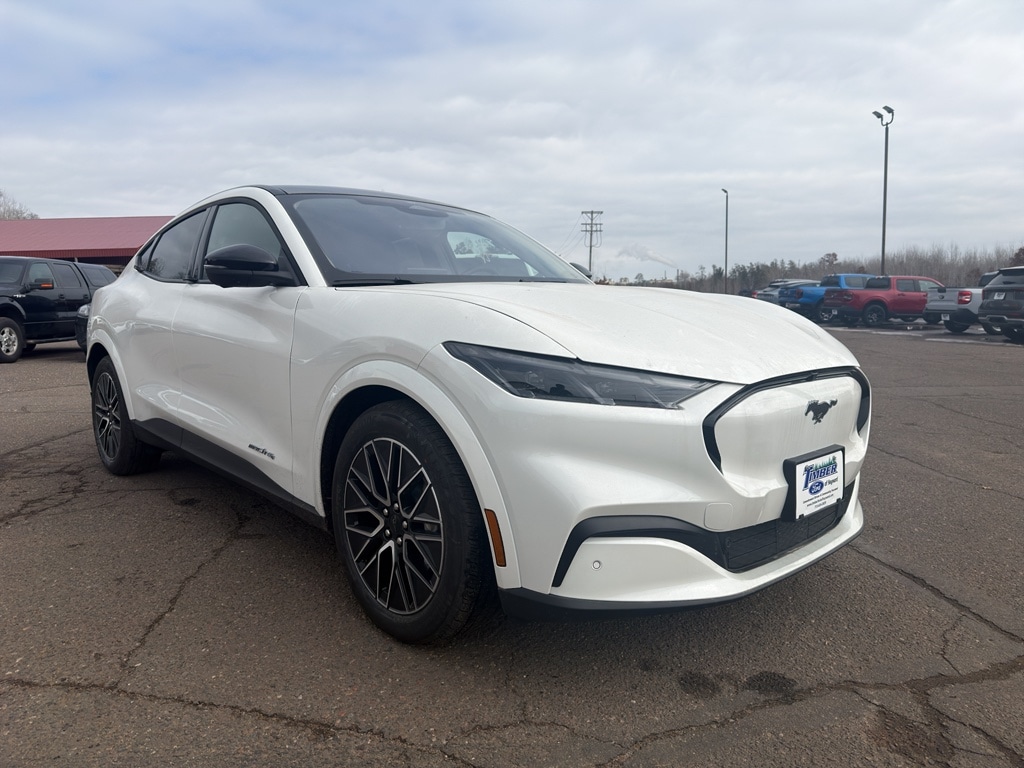 At Timber Ford of Hayward, our staff is more than employees - they're family. Our commitment to our customers extends beyond being knowledgeable and having a diverse selection of vehicles; we also offer quality and timely service. We haven't earned the privilege of your loyalty if we don't meet your needs and exceed your expectations. Proudly serving Hayward, Rice Lake, Minong, Spooner, Cable, Ashland, Superior, Winter, Cumberland, Springbrook, Trego, and Stone Lake. This 2026 Ford Mustang Mach-E has automated speed control that adjusts to maintain a safe following distance, enhancing highway driving convenience. The vehicle is equipped with all wheel drive. This model offers Android Auto for seamless smartphone integration. Apple CarPlay: Seamless smartphone integration for this Ford Mustang Mach-E - stay connected and entertained on the go! The high efficiency automatic transmission shifts smoothly and allows you to relax while driving. See what's behind you with the back up camera on the vehicle. Maintaining a stable interior temperature in the Ford Mustang Mach-E is easy with the climate control system. It features cruise control for long trips. This unit has a Electric Motor high output engine. This mid-size suv features a hands-free Bluetooth phone system. This unit is pure luxury with a heated steering wheel. The leather seats in it are a must for buyers looking for comfort, durability, and style. Help alleviate lower back pain with the driver seat lumbar support in this Ford Mustang Mach-E. The spacious cabin accommodates your family and friends in comfort. Take it to the mountains or the beach. this unit can handle it all. You'll never again be lost in a crowded city or a country region with the navigation system on this Ford Mustang Mach-E. Enjoy the convenience of the power liftgate on this 2026 Ford Mustang Mach-E . The Ford Mustang Mach-E shines with clean polished lines coated with an elegant white finish.