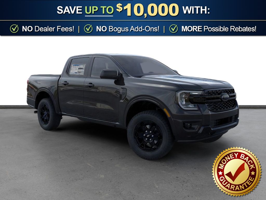 Shadow Black 2026 Ford Ranger XLT NFT 4WD 10-Speed Automatic EcoBoost 2.3L I4 GTDi DOHC Turbocharged VCT 4WD, 3.73 Axle Ratio, 4-Wheel Disc Brakes, 6 Speakers, ABS brakes, Air Conditioning, Alloy wheels, AM/FM radio: SiriusXM with 360L, AM/FM Stereo, Auto High-beam Headlights, Auto-dimming Rear-View mirror, Black Appearance Package, Black Center Bar and Surround Grille, Black Rear Bumper, Body-Color Painted Front Fascia, Brake assist, Class IV Trailer Hitch Receiver, Cloth Front Bucket Seats, Compass, Delay-off headlights, Driver door bin, Driver vanity mirror, Dual front impact airbags, Dual front side impact airbags, Electronic Stability Control, Emergency communication system: SYNC 4 911 Assist, Front and Rear Black Ford Ovals, Front anti-roll bar, Front Bucket Seats, Front Center Armrest, Front fog lights, Front License Plate Bracket, Front reading lights, Front wheel independent suspension, Fully automatic headlights, Gray Painted Center Bar and Grille Surround, Gray Painted Front Fascia and Rear Bumper, Illuminated entry, Leather Shift Knob, Low tire pressure warning, Navigation system: Connected Navigation, Occupant sensing airbag, Outside temperature display, Overhead airbag, Overhead console, Painted Body-Color Wheel Lip Molding, Panic alarm, Passenger door bin, Passenger vanity mirror, Power door mirrors, Power steering, Power windows, Rear reading lights, Rear seat center armrest, Rear step bumper, Rear window defroster, Remote keyless entry, Security system, SiriusXM with 360L and 3-Month Trial Subscription, Speed control, Speed-sensing steering, Sport Appearance Package, Sport Box Decal, Steering wheel mounted audio controls, SYNC 4A with Connected Navigation, Telescoping steering wheel, Tilt steering wheel, Traction control, Trailer Tow Package, Trip computer, Unique Carpet Mats, Variably intermittent wipers, Voltmeter, Wheels: 17 Inch Gray-Painted Aluminum Alloy Sport, Wheels: 18" Black Painted Aluminum.