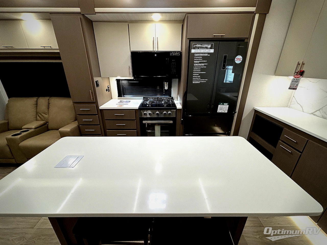 EAST TO WEST Alta Xtreme travel trailer 3250KXT highlights: King Bed, Fireplace, Dual Entry Bathroom, Rear Living Area, Pass-Through Storage, Two Theater Seats. You will feel right at home in this travel trailer! After you've unloaded the pass-through storage and set up the 21' power awning, start preparing lunch with all of the countertop space next to the kitchen sink. You can get a good night's rest on the king bed slide in the front private bedroom and store your clothes in the large front wardrobe. There is even a sliding door washer and dryer prep here if you want the option to add these appliances. The adjustable free standing table offers a comfortable place to enjoy your meals and play card games. Inside the rear living area, you will find opposing slides with a tri-fold sofa and theater seats, as well as a second set of theater seats directly across from the rear entertainment center and fireplace! Each Alta travel trailer or toy hauler by East to West is constructed with a 5" vacuum bonded roof, an enclosed and heated underbelly, and diamond plate front rock guard for added protection. Outside, you'll find marine-grade exterior speakers, a universal docking station, and back-up camera prep that can be added to make maneuvering in and out of campgrounds easier than ever. Inside, there are 4k interior LED lights, solid pressed membrane countertops, black roller shades, and many more interior comforts you are sure to love.