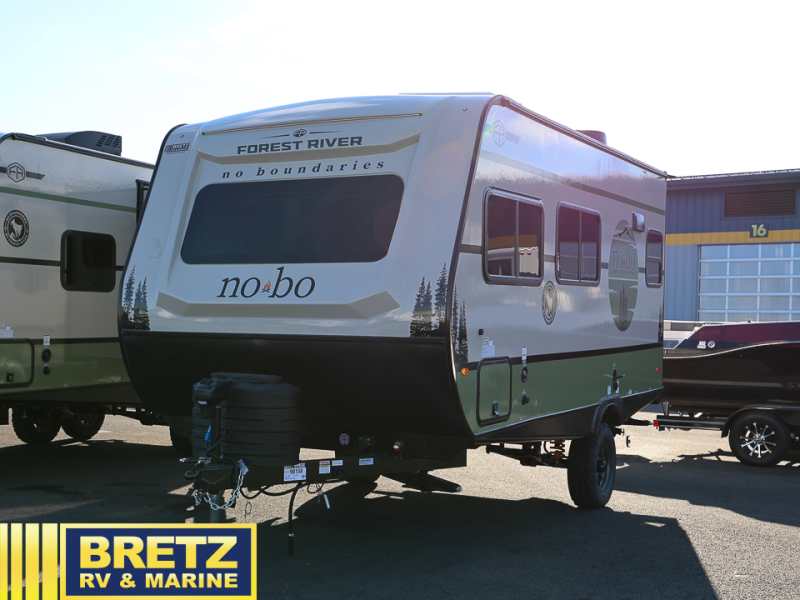 The options and features listed can vary and are based on manufacturer data when built. For an accurate list please contact the dealer. See disclaimer at the bottom of page. Forest River No Boundaries 18 Series travel trailer NB18.0 highlights: Queen Bed, Full Bath, Outside Kitchen, Overhead Cabinets. This easy to tow trailer is perfect for weekend trips to the lake! Once you're set up at camp, put out the patio awning, make lunch on the outside kitchen, and grab your camp chairs from the slam latch cargo doors with pass-thru lighting. A jackknife sofa inside will provide a place to relax in the evenings, and a full bath means you won't have to use the camp's facilities. The rear corner kitchen includes a microwave and cooktop, plus a pantry and refrigerator for food storage. When it's time to call it a night, the front queen bed is sure to bring comfort! The Forest River No Boundaries travel trailers are exceptionally lightweight and can be towed by 4-cylinder and 6-cylinder tow vehicles! They are perfect for the outdoor enthusiast, and you'll find plenty of storage for your camp gear, personal belongings, and more! Each model is constructed with a welded aluminum structure, Azdel composite panels and a fully walkable PVC roof for added durability. There are a wide variety of floorplans to choose from, including 10 Series (under 2,500 lbs.), 18 and 19 Series (under 5,000 lbs.), plus 20 Series (under 5,500 lbs.). There's no boundaries when camping in these travel trailers!