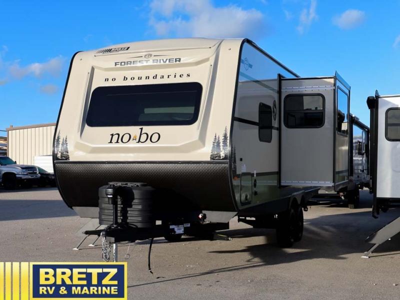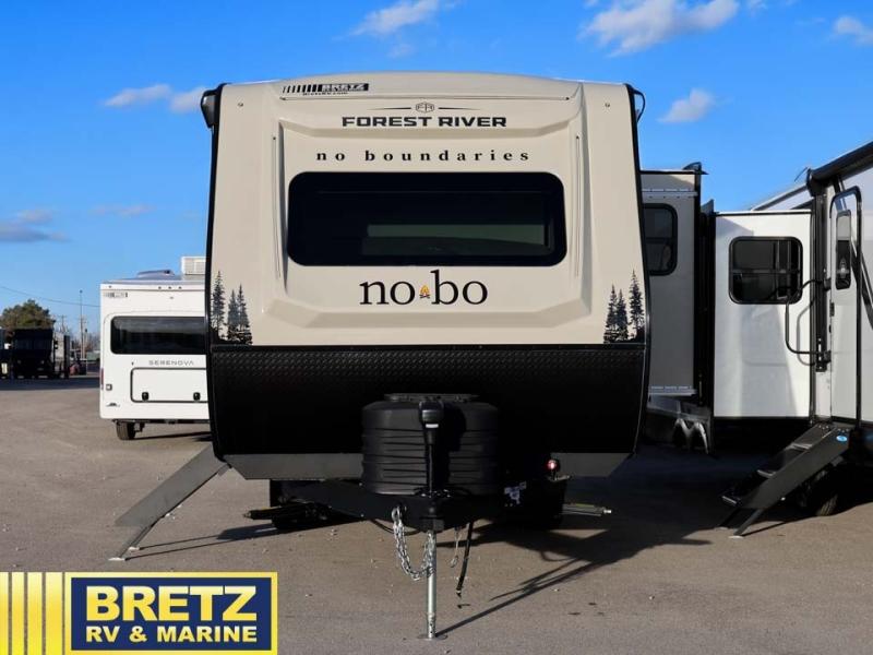 The options and features listed can vary and are based on manufacturer data when built. For an accurate list please contact the dealer. See disclaimer at the bottom of page. Forest River No Boundaries 20 Series travel trailer NB20.3 Beast Mode highlights: Double-Size 52" x 75" Bunks, Murphy Bed, Rear Corner Bathroom, Outside Kitchen. Pack up this very versatile Murphy bed travel trailer and head out to explore! You will love the space saving aspect that a Murphy bed gives you by not increasing the tow length in order to give you a separate bedroom and living space, and you don't even have to make the bed, just fold it up into the wall in the morning! Double-size bunks in the rear corner are perfect for accommodating both children and adults. The kitchen offers everything a cook would need to feed the whole gang and there is even a counter bar area with two stools which will be perfect for breakfast time. There is a booth dinette slide for more dining space, or a place to enjoy a board game or card game when you are inside. When the optional Beast Mode Package on this model is chosen, you'll enjoy a 400-watt solar package, a fresh water filter, a Maxxair roof vent cover, plus a Beast Mode independent suspension for better handling. The Forest River No Boundaries travel trailers are exceptionally lightweight and can be towed by 4-cylinder and 6-cylinder tow vehicles! They are perfect for the outdoor enthusiast, and you'll find plenty of storage for your camp gear, personal belongings, and more! Each model is constructed with a welded aluminum structure, Azdel composite panels and a fully walkable PVC roof for added durability. There are a wide variety of floorplans to choose from, including 10 Series (under 2,500 lbs.), 18 and 19 Series (under 5,000 lbs.), plus 20 Series (under 5,500 lbs.). There are no boundaries when camping in these travel trailers!