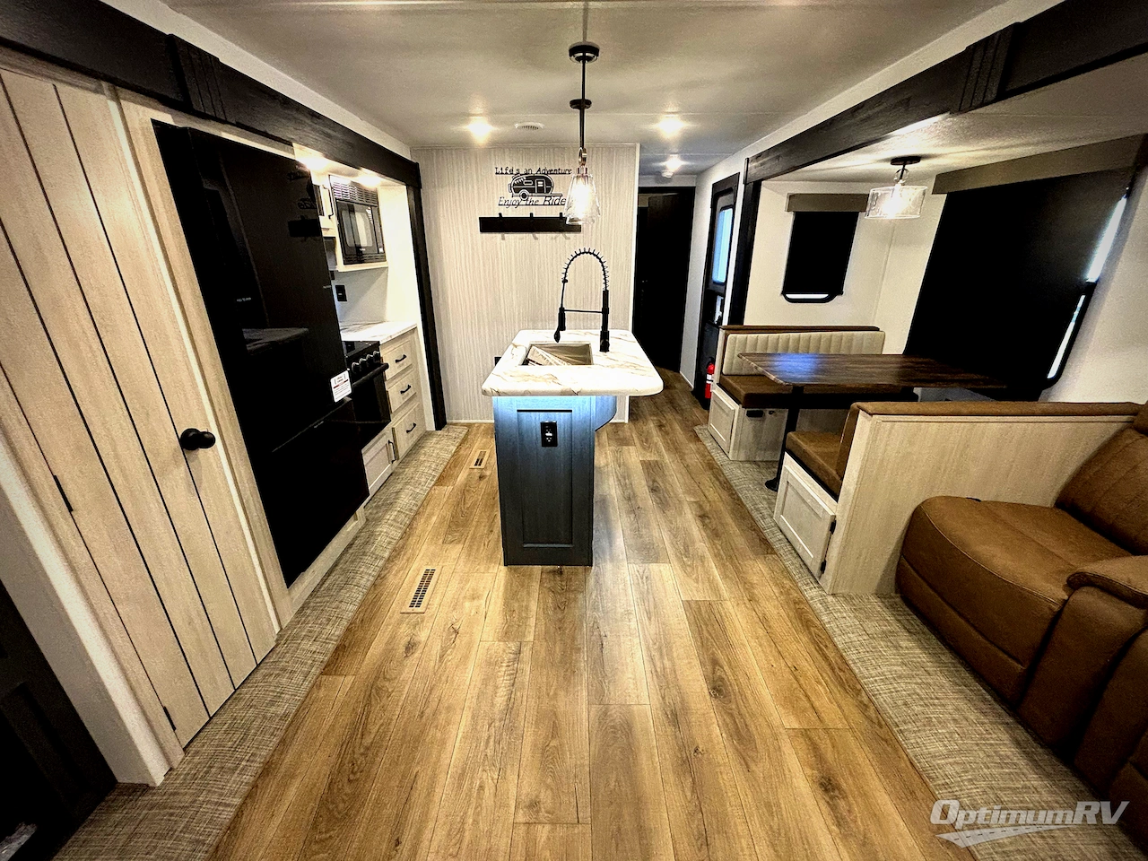 Forest River Puma 31RLQS travel trailer highlights: Kitchen Island, Theater Seating, Front Private Bedroom, Outside Shower. You're going to feel right at home in this travel trailer! The front private bedroom has a queen bed slide for a good night's rest, a dresser and front closet for your clothes, and another closet with washer and dryer prep. Freshen up each morning in the full bathroom with the 32" x 40" shower with a seat and then head to the kitchen to fry up some eggs on the stainless-steel oven and range. You will also appreciate having a kitchen island for easier meal prep and a walk-in pantry to easily see your canned goods and snacks. The booth dinette offers a comfortable place to dine, play, and even sleep once converted. What better way to wind down your nights than to relax on either the rear sofa or on the theater seating across from the entertainment center with a fireplace! If you're looking for family-fun adventures, then you need one of these Forest River Puma travel trailers! They are built rugged, easy to tow, and jam packed with features. The Darco wrapped underbelly will help protect your unit, and the roof and side mount solar prep gives you the option to add off-grid power. Inside, the Congoleum linoleum will be easy to keep clean, and the night roller shades will provide privacy when it's time to turn in. You'll also enjoy an electric awning with an LED light strip plus an AM/FM/Bluetooth stereo and two outside speakers to keep the party going!
