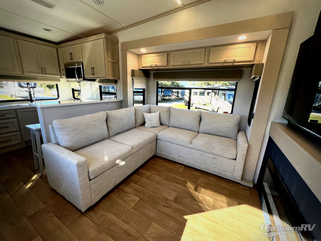 Forest River Puma Mesa fifth wheel 379MBL highlights: Rear Kitchen, Loft, King Bed Slide, L-Lounge, Two Power Awnings. If you enjoy camping with a large group of family or friends, this fifth wheel will be perfect for you! There are five slides, giving your crew plenty of space to relax, plus there is a mid-bunk room with a tri-fold sofa, a 30" x 68" bunk, and a desk. And above this room is a 30" x 68" loft for even more sleeping or storage space. You can claim the front private bedroom all to yourselves which includes a king bed, front bench with dual wardrobes, plus a bedroom fireplace and Smart TV. Everyone can enjoy visiting together in the middle living room on the L-lounge by the entertainment center with a second fireplace. There is a table and chairs for dining space, plus a desk with a chair if you need to get some work done. And don't overlook the rear kitchen with a large refrigerator and pantry, all the appliances to make meals, plus ample counter space, including a bar top that overlooks the main living area! With the Puma Mesa fifth wheel by Forest River redefine your camping experience with a perfect blend of practical living, durable construction, and high-end style! These models are built on a rock-solid foundation featuring an all-welded aluminum frame superstructure and high gloss fiberglass vacuum bonded walls with Dual Azdel for long-lasting quality. The expansive 101" wide-body design maximizes interior space, and the worry-free composite slide floors provide excellent stability. Outside, the Puma Mesa ensures effortless travel and setup with a standard 6-point hydraulic leveling system and reliable 7,000 lb. axles with ABS and a Tire Pressure Monitoring System (TPMS). These fifth wheels also include practical features like a heated utility convenience center, 12V heat pads on all holding tanks for extended season use, and convenient slam latches on all storage doors. You will also love the outdoor living space created by the power awnings with LED lights and the accessibility provided by the standard ladder!