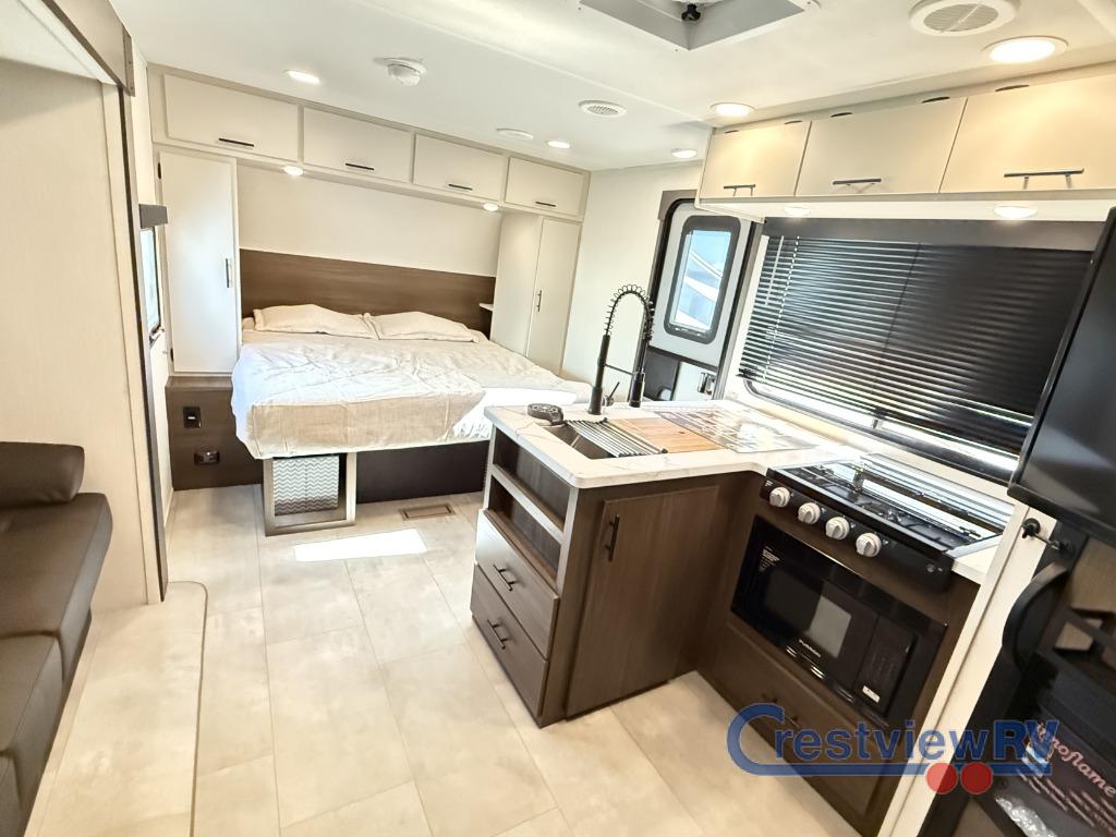 Prime Time Tracer Touring Edition travel trailer 195RB highlights an array of premium amenities. The spacious full rear shower provides a rejuvenating retreat, perfect for unwinding after a long day. The sophisticated entertainment center is ideal for cozy nights in, and the plush jackknife sofa offers a comfortable spot to relax or sleep. Generous storage space for your belongings is provided by ample overhead cabinets. Further, the gourmet kitchen is equipped with a convenient side 12V fridge, high-performance three-burner cooktop, and cleverly designed hidden pantry, making meal prep and cooking a true delight. Plus, the majestic front bedroom features a sumptuous king bed that will make you feel like you are sleeping in the clouds, expansive wardrobes, and overhead cabinets for storing your essentials. The Prime Time Tracer travel trailers are ultra lightweight for an easier tow! They are built with solid construction materials so you can enjoy camping and making memories for years to come. Interior luxuries are easy to find with full bath and kitchen amenities, comfortable sleeping and seating spaces, plus ample storage space for your personal belongings and camp gear!