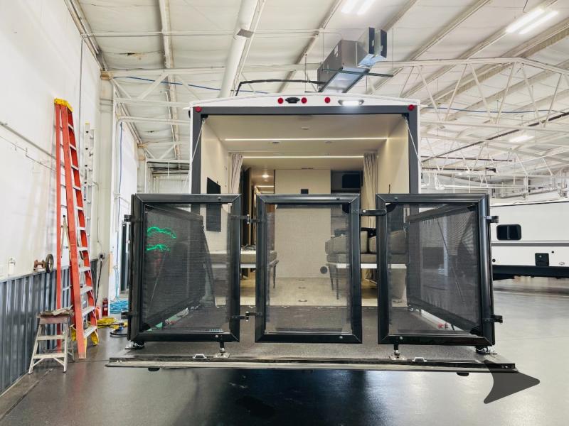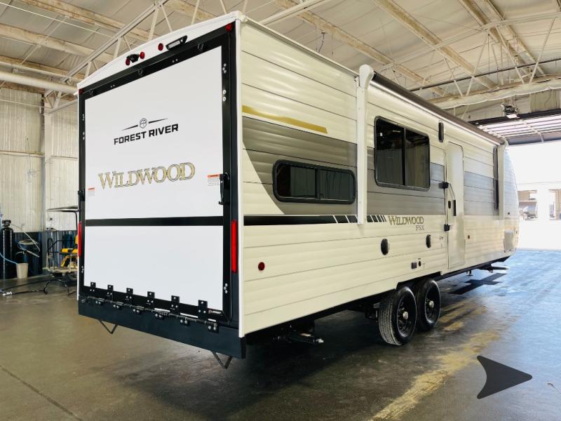 Forest River Wildwood FSX MAX toy hauler 270RTK highlights: King Bed, Bedroom Walk-In Closet, Two Sofa Sleepers, Carpet Free. Take your adventures to the max in this MAX toy hauler with more space and features! Unload your dirt bikes from the 14' garage, then convert this space to the 1,500 lb. capacity patio. This model includes two sofa sleepers with a table to dine and let guests sleep over. The main living area will feel more like home with a fireplace, and the full kitchen will allow you to prepare meals for your whole group. If you enjoy cooking outdoors then you will love the outdoor griddle and refrigerator, plus there is an 18' power awning here for shade. After dinner is cleaned up, head to the front private bedroom for a great night's rest and plan to do it all over again tomorrow! The Forest River Wildwood FSX travel trailers and toy hauler travel trailers are ultra comfortable and lightweight, perfect for first time or seasoned campers alike! You will love how easy it will be to relax with residential features that will make your space feel just like home, and the durable construction means you can enjoy your RV for years to come. There are a wide variety of floorplans to choose from, including couple's trailers, bunk models, and toy haulers, all with full bath and kitchen amenities and plenty of storage for all your gear!