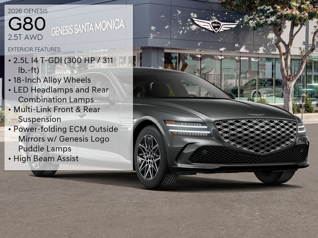 Makalu Gray 2026 Genesis G80 2.5T AWD 8-Speed Automatic I4. Recent Arrival! 20/29 City/Highway MPG. Peace of mind. Factory warranty. 60 months/60,000miles from the vehicle's original in-service date. Warranty details. A name you can trust. Genesis Santa Monica is dedicated to your satisfaction before, during, and after your purchase. We'll go the extra mile to take care of you.