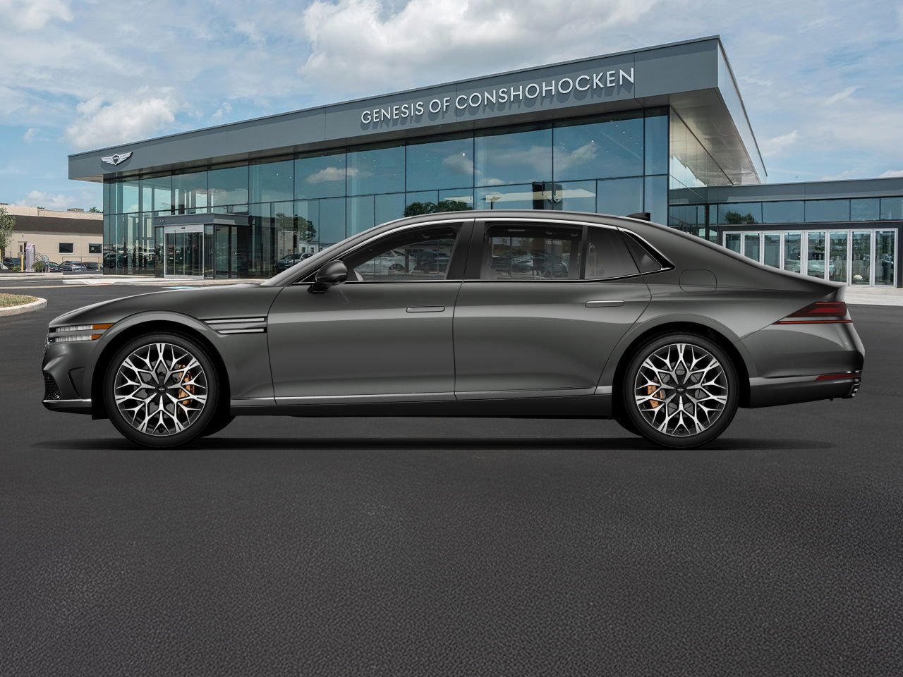 The 2026 Genesis G90 3.5T E-SC MHEV AWD offers a luxurious driving experience with a turbo/supercharged gas/electric V-6 engine and all-wheel drive. The vehicle features a sophisticated Makalu Gray exterior and Vlvt Burgundy/Dune Beige interior, complemented by Nappa leather seating surfaces. Enjoy advanced technology, premium sound, and a suite of safety features in this high-performance, fuel-efficient luxury sedan.