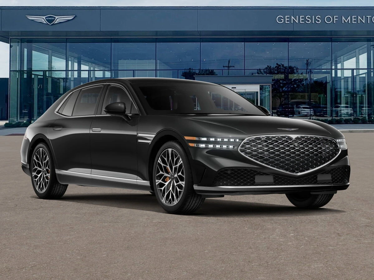 The 2026 Genesis G90 is a model that is used to be a model. The Genesis G90 is a new luxury sedan with a 3.5L electric assisted twin turbo V6 engine and all-wheel drive. It features a sophisticated interior with Glacier White and Urban Brown accents, and a striking Vik Black exterior. The vehicle is equipped with advanced technology and comfort features, making it a standout in its class.