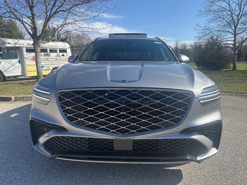 Silver 2026 Genesis GV70 3.5T Sport Prestige AWD 8-Speed Automatic with SHIFTRONIC 3.5L DOHC GV70 3.5T Sport Prestige, AWD, Android Auto & Apple CarPlay, Auto High-beam Headlights, Auto-dimming door mirrors, Auto-dimming Rear-View mirror, Brake assist, Bumpers: body-color, Cargo Cover, Cargo Net, Cargo Tray, Electronic Stability Control, Exterior Parking Camera Rear, First Aid Kit, Fully automatic headlights, Heads-Up Display, Heated and Ventilated Front Bucket Seats, Heated steering wheel, Illuminated entry, Leather steering wheel, Memory seat, Nappa Leather Seating Surfaces, Navigation System, NFC Key Card, Power Liftgate, Power moonroof, Rain sensing wipers, Remote keyless entry, Security system, Speed control, Spoiler, Steering wheel memory, Steering wheel mounted audio controls, Telescoping steering wheel, Turn signal indicator mirrors, Ventilated front seats, Wheels: 21" Dark Sputtering Alloy.