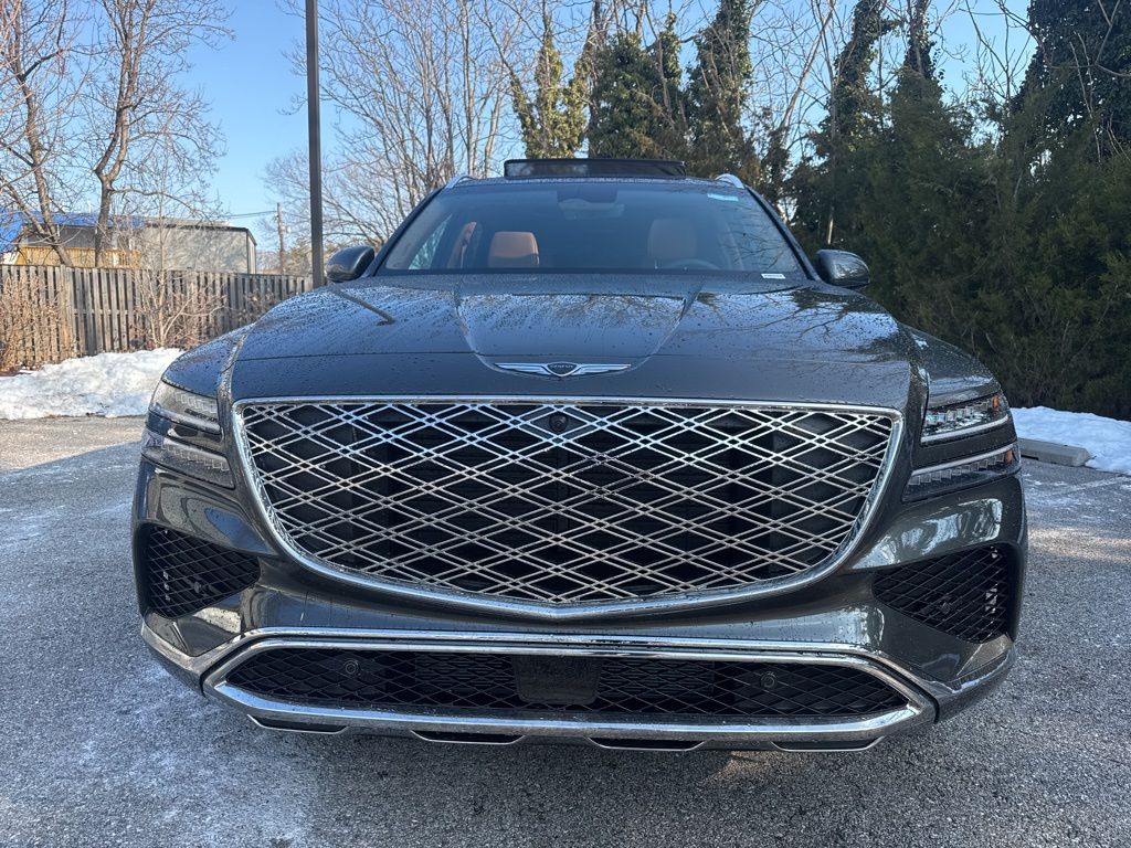 Gray 2026 Genesis GV80 2.5T Advanced AWD 8-Speed Automatic 2.5L DOHC GV80 2.5T Advanced, AWD, 3rd row seats: split-bench, Auto High-beam Headlights, Auto tilt-away steering wheel, Auto-dimming door mirrors, Auto-dimming Rear-View mirror, Brake assist, Bumpers: body-color, Electronic Stability Control, Exterior Parking Camera Rear, Fully automatic headlights, Heated and Ventilated Front Bucket Seats, Heated door mirrors, Heated steering wheel, Illuminated entry, Leather Seating Surfaces, Leather steering wheel, Memory seat, Navigation System, Panic alarm, Power driver seat, Power Liftgate, Power moonroof, Rain sensing wipers, Remote keyless entry, Speed control, Steering wheel memory, Steering wheel mounted audio controls, Telescoping steering wheel, Turn signal indicator mirrors, Wheels: 20" x 8.5J Dark Gray Matte Alloy.