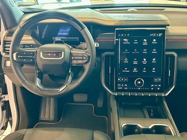 The 2026 GMC Acadia AT4 offers a blend of comfort, technology, and performance. With a 2.5L Turbo engine and advanced driver assistance features like Super Cruise and Enhanced Automatic Parking Assist, this SUV is designed for both convenience and safety. The spacious interior features heated seats, a heated steering wheel, and a premium Bose audio system, while the exterior is enhanced by Gloss Black roof-mounted side rails and an 18" Dark Machined Aluminum wheel design. The Glacier White Tricoat exterior is complemented by a Forest Storm accent and the interior provides a warm, Forest Storm accent.