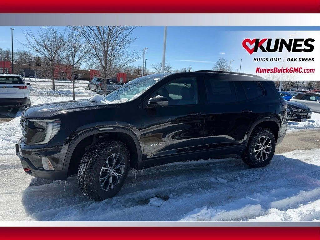 Discover the unparalleled capabilities of the 2026 GMC Acadia AT4, a new SUV built for those who don't shy away from adventure. Finished in the sophisticated Ebony Twilight Metallic exterior, this Acadia is designed to turn heads while embracing the ruggedness and durability inherent to GMC's AT4 lineup. Step inside to experience the premium interior, featuring Forest Storm upholstery accented with rich Mahogany details. This combination provides a striking contrast that exudes both elegance and comfort for every journey. Under the hood, you'll find a robust 2.5L DOHC engine paired with an 8-speed automatic transmission, delivering efficient power across varied terrains. The Acadia AT4's all-wheel-drive system ensures optimal traction, whether navigating city streets or off-road paths. The Acadia is not just an SUV; it's your companion for every Wisconsin adventure. With a commitment to honesty and integrity, Kunes Buick GMC of Oak Creek invites you to experience this remarkable vehicle first-hand. Schedule a test drive today and explore why we've been named Dealer of the Year by DealerRater.com an impressive ten times. Visit us in Oak Creek and become part of a community that values trust and premium automotive experiences.