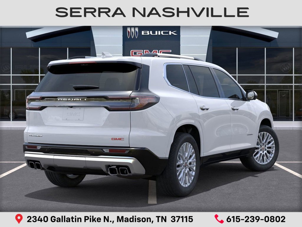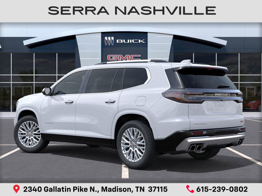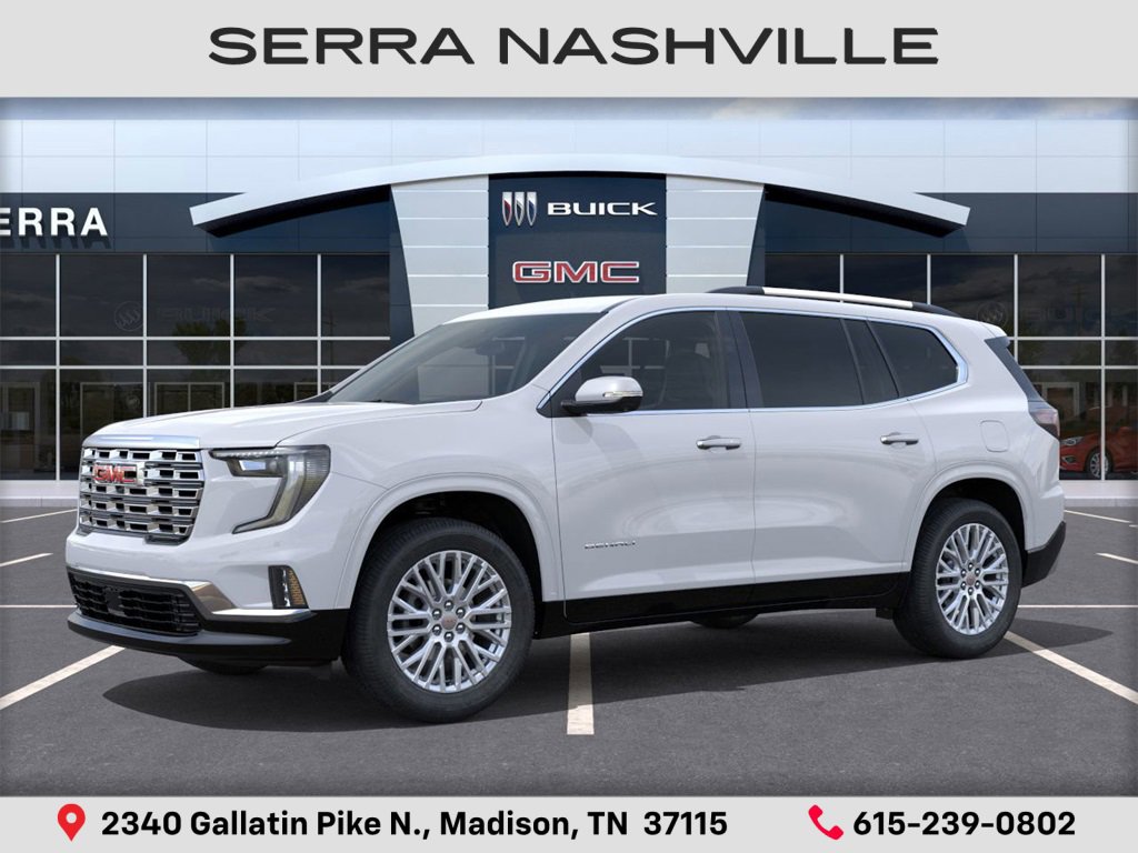 2026 GMC Acadia Denali For sale at Serra GMC Nashville. Serra Nashville has the largest selection of the new GMC Acadia in Nashville. This vehicle is Glacier White Tricoat and well equipped with Floor Liner Package, Memory Package, Preferred Equipment Group 5SA, Super Cruise Package, FWD, Sheer/Very Dark Atmosphere Leather, 12 Speakers, 3rd Row Seating. Ask us about special price, lease offers and incentives on most 2026 GMC Acadias on sale at Serra Chevrolet Buick GMC Nashville. If you're shopping for a new GMC Acadia near Nashville, look no further than Serra GMC Nashville. Welcome to Serra Chevrolet Buick GMC located in Madison, TN. Our dealership embodies a commitment to quality, integrity, and customer satisfaction with our Veteran Owned, Value Driven culture. With a vast selection of top-tier Chevrolet, Buick, and GMC vehicles, we cater to a diverse range of preferences, lifestyles and budgets. Our knowledgeable and friendly team is dedicated to guiding you through every step of your car-buying journey, ensuring you find the perfect vehicle to suit your needs. From cutting-edge technology to reliable performance, Serra Chevrolet Buick GMC sets the standard for excellence.
