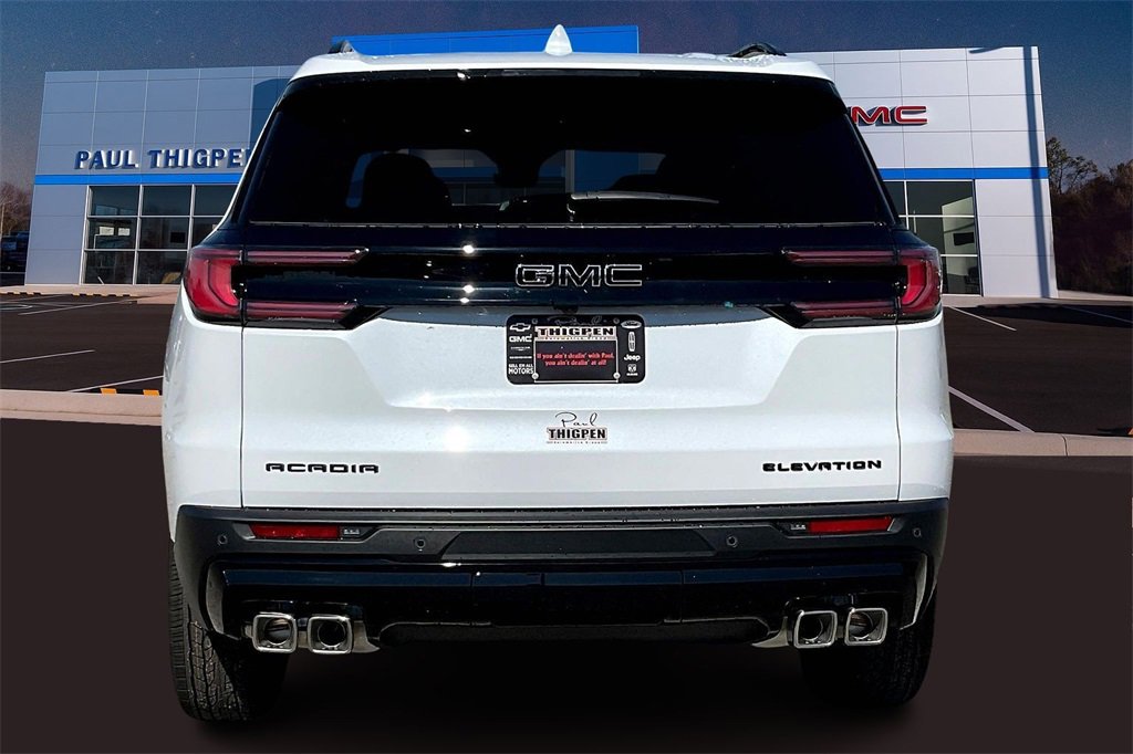 Paul Thigpen Chevrolet GMC has new car prepared this 2026 GMC Acadia and comes with the following Black Edition (Front and Rear Black GMC Emblems, Gloss Black Roof Rails, High Gloss Black Door Upper Moldings, and Wheels: 22 x 8.5 Gloss Black Aluminum), Elevation Premium Package (3-Channel Programmable Universal Home Remote, 6-Way Power Front Passenger Seat Adjuster, 7-Passenger Seating (2-2-3 Seating Configuration), CoreTec Seat Trim, and Front Passenger Power Lumbar Seat Adjuster), Luxury Package (8 Diagonal Head-Up Display, Heated Rear Outboard Seating Positions, Heated Wiper Park, and Laminated Acoustic Glass), Preferred Equipment Group 4SC, Super Cruise Package (3 Years of OnStar One, Driver Attention Assist, Enhanced Automatic Parking Assist, and Super Cruise), FWD, After Dark Cloth. Glacier White 2026 GMC Acadia Elevation FWD 8-Speed Automatic 2.5L DOHC FWD, After Dark Cloth.