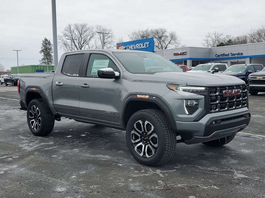 Discover rugged capability and refined comfort with this 2026 GMC Canyon 4WD AT4, now available in Paw Paw, MI. Powered by a responsive 4-cylinder 2.7L gasoline engine and paired with an automatic transmission, this GMC Canyon delivers confident performance on pavement and off the beaten path. Built for adventure, the AT4 trim includes an Off-Road Package that adds enhanced suspension, skid plates, and terrain-ready features so you can tackle trails with ease. Inside, enjoy leather seats that provide premium comfort and durability, plus a Back-Up Camera for safer reversing in tight spots. Stay connected on the go with Hands Free Bluetooth for seamless calls and audio streaming, and warm up on chilly mornings with convenient Remote Start. The spacious cabin balances utility and refinement, making this truck ideal for work, weekend trips, and daily driving. Located in Paw Paw, MI, this 2026 GMC Canyon 4WD AT4 is competitively priced and listed as the best price in the area offering excellent value for buyers seeking capability and comfort. Don't miss this opportunity to own a purpose-built mid-size truck with off-road readiness and modern tech. Contact us today to schedule a test drive and experience the GMC Canyon's performance for yourself.