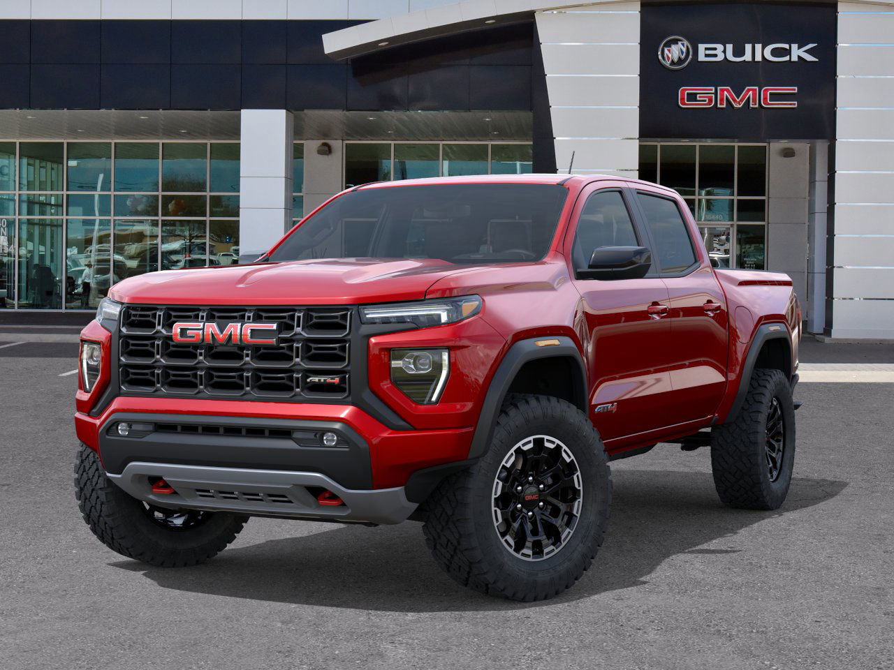 The 2026 GMC Canyon AT4 offers a TurboMax engine paired with an 8-speed automatic transmission, providing a powerful driving experience. The vehicle features a Volcanic Red Tintcoat exterior and a Jet Jet Black/Timber interior. It is equipped with advanced safety and safety features to provide comfort and protection for all occupants.
