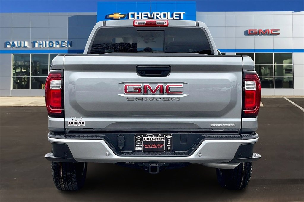 Sterling Metallic 2026 GMC Canyon Elevation 2.7L I4 Turbocharged DOHC 16V LEV3-SULEV30 310hp RWD Canyon Safety Plus Package (Blind Zone Steering Assist with Trailering, Rear Cross Traffic Braking, and Ultrasonic Rear Park Assist), Preferred Equipment Group 2VL (Automatic Emergency Braking, Canyon Pro Safety, Following Distance Indicator, Forward Collision Alert, Front Pedestrian and Bicyclist Braking, IntelliBeam Automatic High Beam on/Off, and Lane Keep Assist with Lane Departure Warning), 1 Rear USB Port in Center Console (Charge-Only), 2 1st Row USB Charge/Data Ports, 3.42 Rear Axle Ratio, 4-Way Manual Front Passenger Seat Adjuster, 4-Wheel Disc Brakes, 6 Speakers, 6-Speaker Audio System Feature, 6-Way Manual Driver Seat Adjuster, ABS brakes, Air Conditioning, Alloy wheels, AM/FM radio, Apple CarPlay/Android Auto, Auto High-beam Headlights, Automatic Stop/Start, Brake assist, Bumpers: body-color, Cloth Seat Trim, Compass, Delay-off headlights, Driver door bin, Driver vanity mirror, Dual front impact airbags, Dual front side impact airbags, Electronic Stability Control, Emergency communication system: OnStar, Front anti-roll bar, Front Bucket Seats, Front Center Armrest, Front License Plate Kit, Front Passenger Seatback Map Pocket, Front wheel independent suspension, Heated door mirrors, Illuminated entry, Low tire pressure warning, Navigation System, Occupant sensing airbag, Off-Road Suspension, Outside temperature display, Overhead airbag, Overhead console, Panic alarm, Passenger door bin, Passenger vanity mirror, Power door mirrors, Power steering, Power windows, Radio data system, Radio: 11.3 Diagonal Premium GMC Infotainment System, Rear reading lights, Rear step bumper, Rear window defroster, Remote keyless entry, Security system, SiriusXM with 360L, Speed control, Speed-sensing steering, Split folding rear seat, Steering wheel mounted audio controls, Stop/Start System Disable Button Engine Control, Tachometer, Tilt steering wheel, Traction control, Trip computer, Variably intermittent wipers, Wheels: 18 x 8.5 Gloss Black Finish Aluminum.
