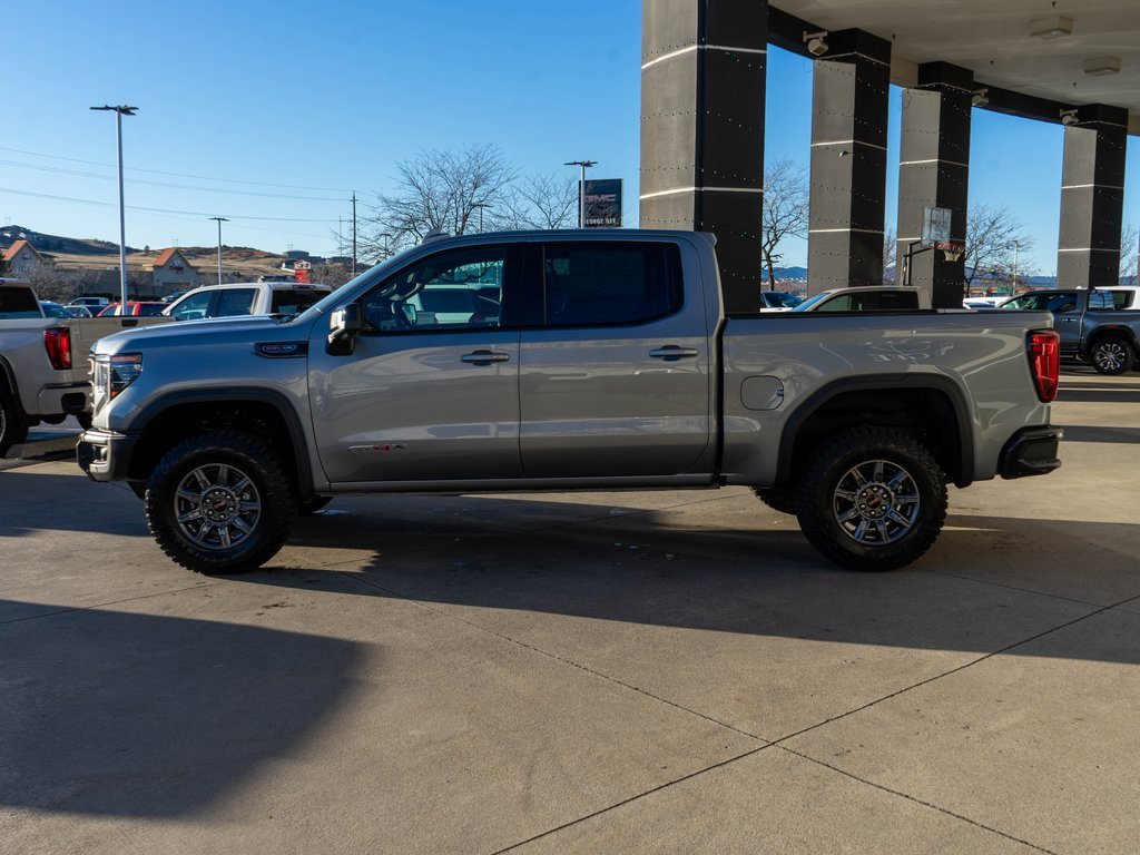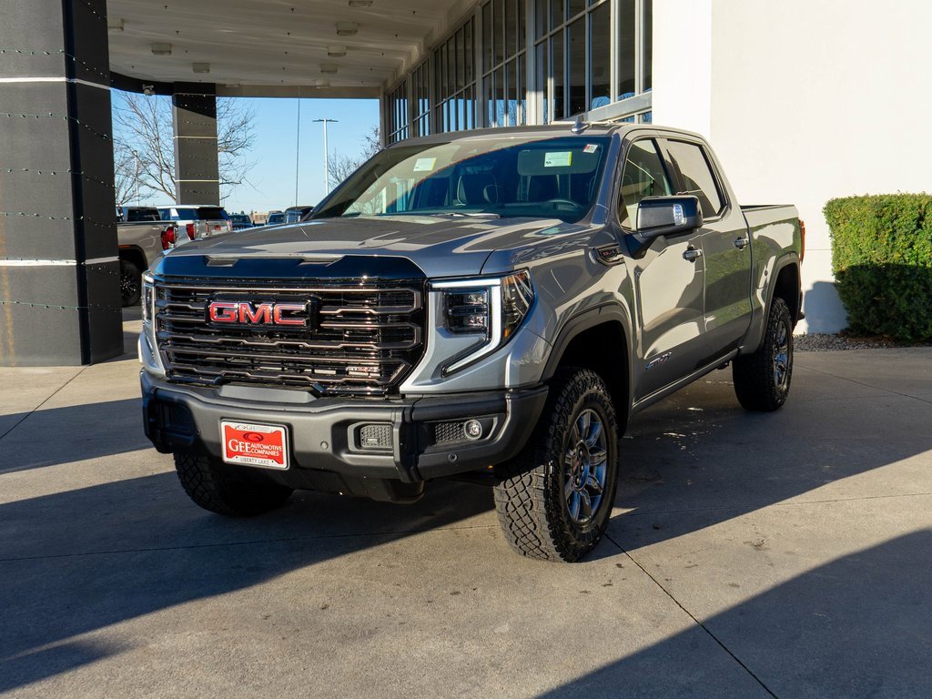 Sterling Metallic 2026 GMC Sierra 1500 AT4X 4WD 10-Speed Automatic EcoTec3 6.2L V8 10-Speed Automatic, 4WD, Obsidian Rush Leather, 12 Speakers, 120-Volt Bed Mounted Power Outlet, 120-Volt Interior Power Outlet, 16-Way Power Driver Seat Adjuster w/Lumbar, 16-Way Power Passenger Seat Adjuster w/Lumbar, 2 Charge/Data USB Ports Inside Center Console, 2 Type-C Charge-Only Rear USB Ports, 2 USB Ports, 220 Amp Alternator, 3.23 Rear Axle Ratio, 4-Wheel Disc Brakes, ABS brakes, Air Conditioning, Alloy wheels, AM/FM radio: SiriusXM with 360L, Apple CarPlay/Android Auto, Auto High-beam Headlights, Auto-dimming door mirrors, Auto-dimming Rear-View mirror, Automatic Emergency Braking, Automatic temperature control, Bed View Camera, Block heater, Bose Premium Series w/12-Speaker System, Brake assist, Buckle to Drive, Color-Keyed Carpeting Floor Covering, Compass, Deep-Tinted Glass, Delay-off headlights, Driver door bin, Driver Memory, Driver vanity mirror, Driver-Selectable Full-Locking Front Differential, Driver-Selectable Full-Locking Rear Differential, Dual Active Exhaust, Dual front impact airbags, Dual front side impact airbags, Electric Rear-Window Defogger, Electronic Stability Control, Emergency communication system: OnStar, Floor-Mounted Center Console, Following Distance Indicator, Forward Collision Alert, Front anti-roll bar, Front Bucket Seats, Front Center Armrest, Front dual zone A/C, Front fog lights, Front Pedestrian Braking, Front Prem Floor Liners w/Removable Carpet Insert, Front Rain-Sensing Wipers, Front reading lights, Front wheel independent suspension, Full Grain Leather Seat Trim, Fully automatic headlights, Garage door transmitter, Genuine wood dashboard insert, Genuine wood door panel insert, Gloss Black Header w/Drk Nickel Grille Insert Bars, HD Surround Vision, Heads-Up Display, Heated 2nd Row Outboard Seats, Heated door mirrors, Heated Driver & Front Outboard Passenger Seating, Heated front seats, Heated rear seats, Heated steering wheel, Heavy-Duty Air Filter, Hill Descent Control, Hitch Guidance, Hitch View, Illuminated entry, In-Vehicle Trailering System App, Integrated Trailer Brake Controller, IntelliBeam Automatic High Beam On/Off, Keyless Open & Start, Lane Keep Assist w/Lane Departure Warning, Leather steering wheel, LED Cargo Area Lighting, Low tire pressure warning, Memory seat, Multicolor 15 Diagonal Head-Up Display, MultiPro Tailgate Audio System by Kicker (LPO), Navigation System, Occupant sensing airbag, Off-Road Suspension, OnStar Services Capable, Outside temperature display, Overhead airbag, Overhead console, Panic alarm.