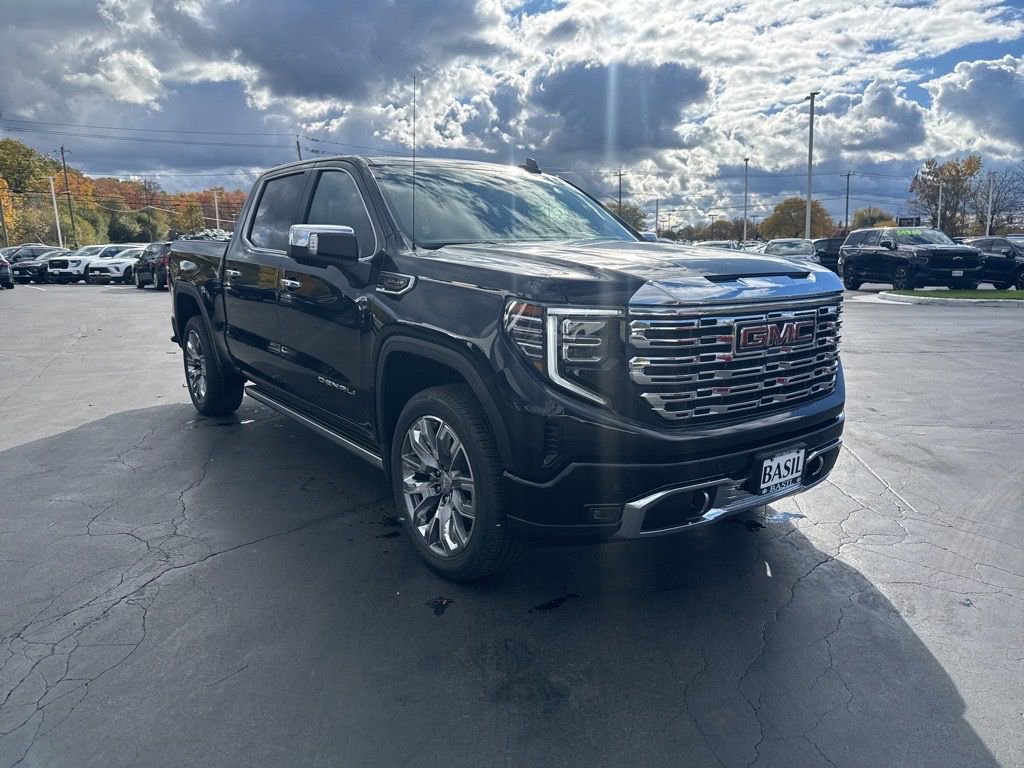 The 2026 GMC Sierra 1500 Denali Four Wheel Drive Crew Cab features a 6.2L EcoTec3 V8 engine paired with a 10-speed automatic transmission. This truck offers a premium interior with Jet Black perforated leather seat trim, advanced technology including a 13.4" GMC Premium Infotainment System with Google built-in, and a suite of safety features. The Onyx Black exterior is complemented by chrome and LED accents, providing both style and utility for any driving condition.