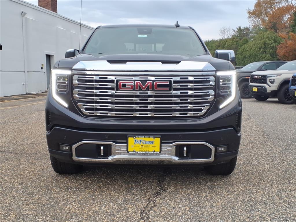 The 2023 GMC Sierra 1500 Denali Four Wheel Drive Crew Cab features a 6.2L EcoTec3 V8 engine and a premium interior. The vehicle offers a comfortable ride with advanced technology and safety features. The vehicle features a Titanium Rush Metallic exterior color and a Forge perforated leather seat trim. The vehicle features a 10-speed automatic transmission with electronic precision shift and a dynamic fuel type. The vehicle offers a smooth, quiet ride with advanced safety features. The vehicle features a 13.4" diagonal infotainment screen with Apple CarPlay and Android Auto capability. The vehicle features a 4WD drivetrain with all-wheel drive capability. The vehicle features a 4WD system with advanced safety features. The vehicle features a premium sound system with Bluetooth streaming audio for music and select phones. The vehicle features a wireless charging system with induction technology for portable electronic devices.