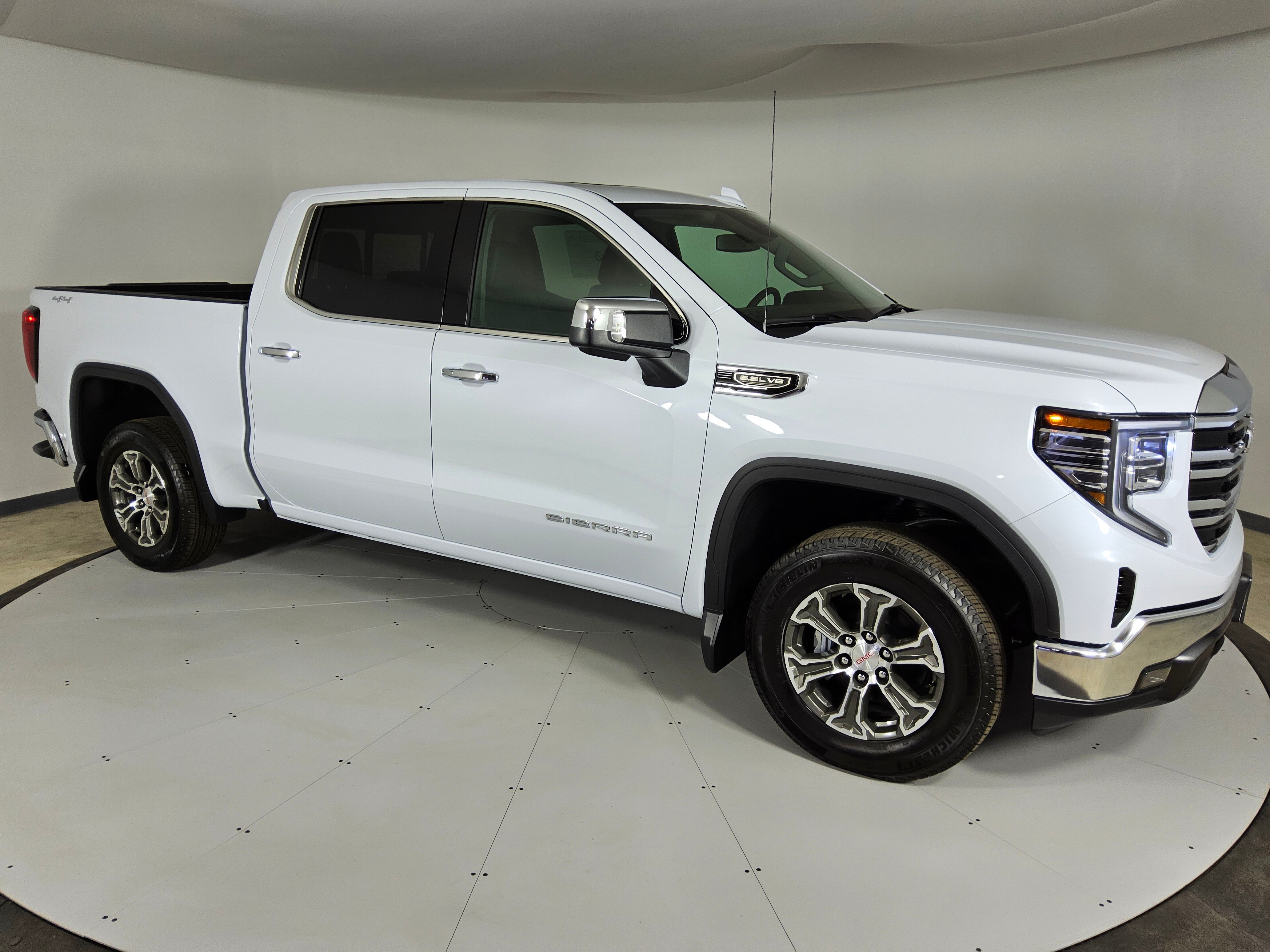 Start saving vehicles today! Interested in this vehicle? Create a profile and save this car for later. The 2026 GMC Sierra 1500 SLT Four Wheel Drive Crew Cab features a 5.3L EcoTec3 V8 engine paired with a 10-speed automatic transmission. This truck offers a premium interior with Jet Black leather-appointed seating, advanced technology including a 13.4" GMC Premium Infotainment System with Google built-in, and a suite of comfort and safety features. The Glacier White Tricoat exterior is complemented by chrome accents and LED lighting throughout the cabin.