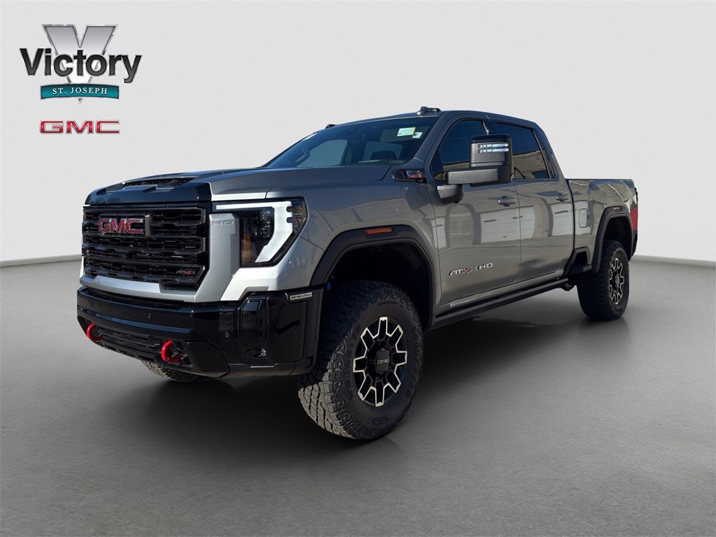 Sterling Metallic GMC Sierra 2500HD AT4X 4WD 10-Speed Automatic Duramax 6.6L V8 Turbodiesel 10-Speed Automatic, 4WD, Obsidian Rush Leather. 2026 Recent Arrival!