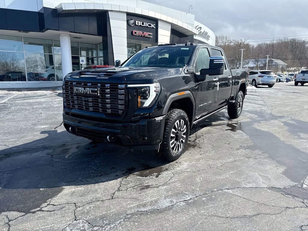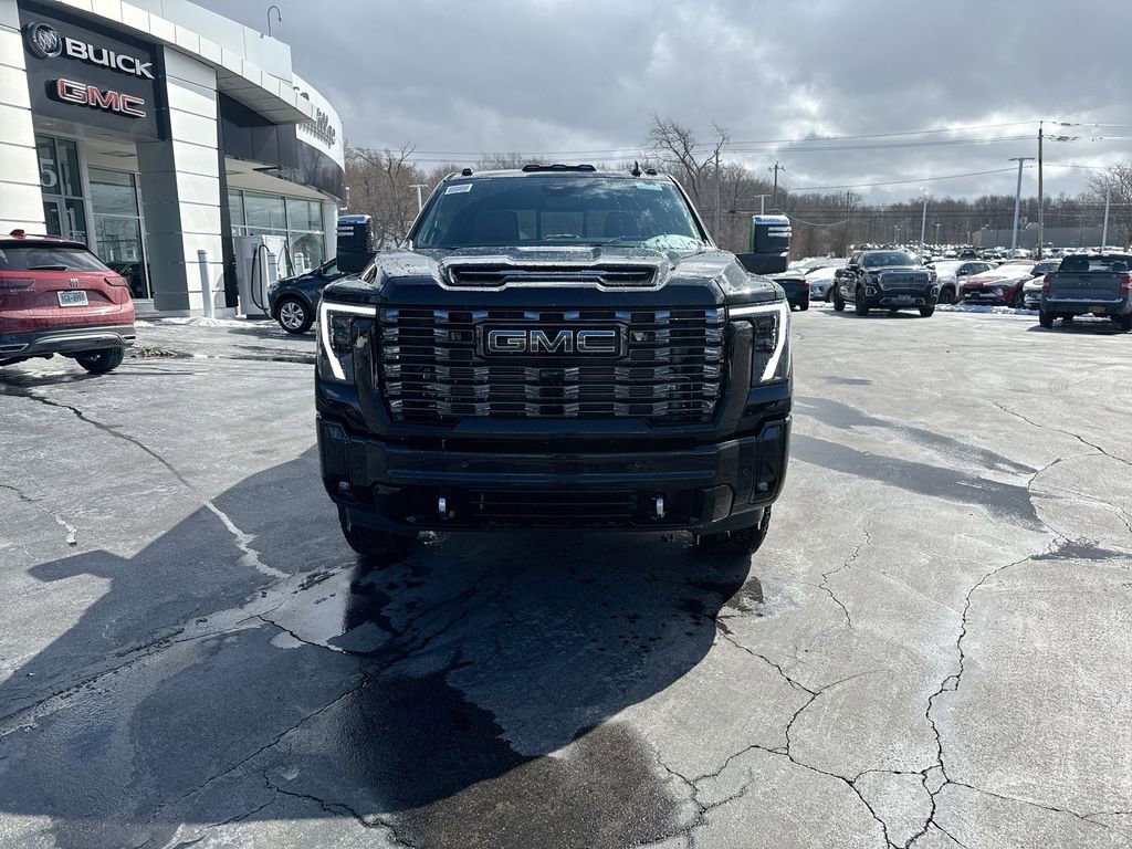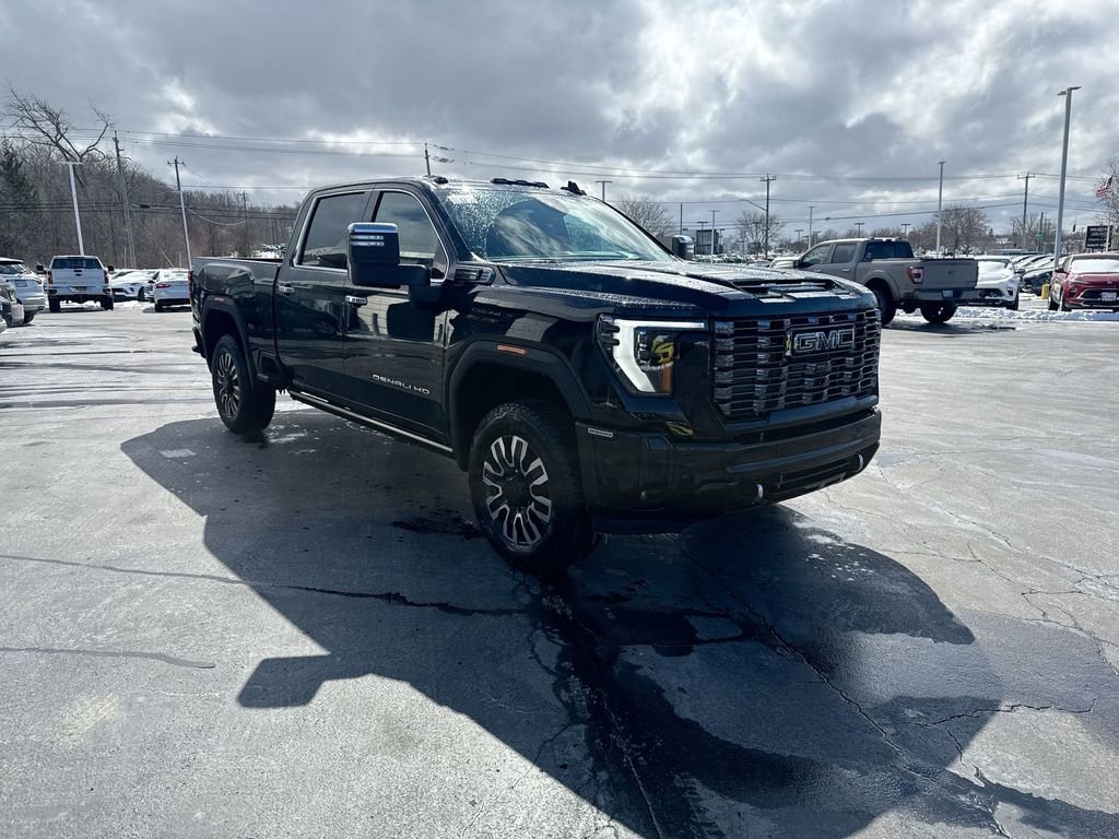 The 2026 GMC Sierra 2500 HD Denali Ultimate features a 6.6L Duramax Turbo-Diesel V8 engine, providing 470 horsepower and 975 lb-ft of torque. This heavy-duty truck is equipped with premium leather seats, advanced technology, and a suite of safety features. The Onyx Black exterior is complemented by an Alpine Umber interior, and the vehicle is designed for both comfort and capability, with features like a power sunroof, heated seats, and a state-of-the-art infotainment system.