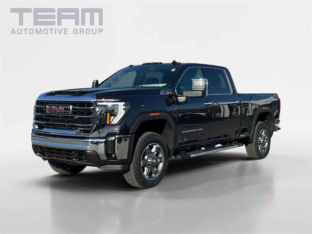 2026 GMC Sierra 2500HD SLT Titanium Rush Metallic Duramax 6.6L V8 Turbodiesel 4WD. Check out all these great options. SLT Convenience Package includes Bose Premium 7-Speaker Sound System, Ventilated Driver & Front Passenger Seats, LED Smoked Amber Roof Marker Lamps, and Wireless Cell Phone Charging. Suspension Package, 10-Way Power Driver Seat Adjuster with Lumbar, 10-Way Power Passenger Seat Adjuster with Lumbar, and 120-Volt Bed Mounted Power Outlet. The vehicle features a 6.6L Duramax Turbo-Diesel V8 engine, 20" Bright Face Wheels with Dark Painted Pockets, and a premium GMC Infotainment System with Google built-in.