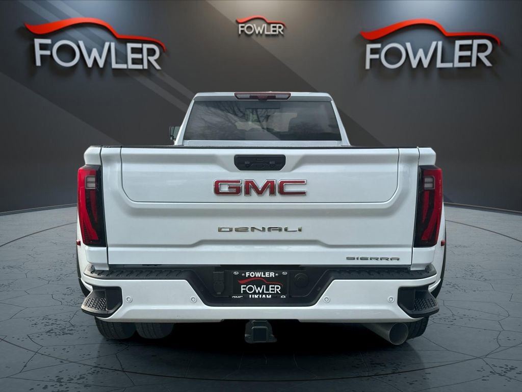 Glacier White Tricoat 2026 GMC Sierra 3500HD Denali 4WD 10-Speed Automatic Duramax 6.6L V8 Turbodiesel 10-Speed Automatic, 4WD, Black Leather, 12-Way Power Driver Seat Adjuster with Lumbar, 12-Way Power Passenger Seat Adjuster with Lumbar, 120-Volt Bed Mounted Power Outlet, 120-Volt Instrument Panel Power Outlet, 2 Charge-Only Rear USB Ports, 2 Charge/Data USB Ports Inside Center Console, 2 USB Ports, 2-Speed Active Transfer Case, 4-Wheel Disc Brakes, 7 Speakers, ABS brakes, Air Conditioning, Alloy wheels, AM/FM radio: SiriusXM with 360L, Auto High-beam Headlights, Auto-dimming door mirrors, Auto-Dimming Inside Rearview Mirror with Camera, Auto-dimming Rear-View mirror, Automatic Emergency Braking, Automatic temperature control, Bed View Camera with Two Trailer Camera Provisions, Bose Premium 7-Speaker Sound System, Brake assist, Buckle to Drive, Bumpers: body-color, Compass, Deep-Tinted Glass, Delay-off headlights, Denali Reserve Package, Driver door bin, Driver Memory, Driver vanity mirror, Dual 220-Amps Primary and 170-Amps Auxiliary Alternators, Dual front impact airbags, Dual front side impact airbags, Electric Rear-Window Defogger, Electronic Stability Control, Emergency communication system: OnStar Services capable, Engine Block Heater, Exhaust Brake, Exterior Parking Camera Rear, Floor-Mounted Center Console, Following Distance Indicator, Forge Perforated Leather Seat Trim, Forward Collision Alert, Front anti-roll bar, Front Bucket Seats, Front Center Armrest, Front dual zone A/C, Front fog lights, Front License Plate Kit, Front Pedestrian Braking, Front reading lights, Front wheel independent suspension, Fully automatic headlights, Garage door transmitter, Genuine wood dashboard insert, Genuine wood door panel insert, GMC Premium 13.4 Diagonal Information Display, Gooseneck/5th Wheel Prep Package, HD Surround Vision, Heated 2nd Row Outboard Seats, Heated door mirrors, Heated Driver and Front Outboard Passenger Seats, Heated front seats, Heated rear seats, Heated steering wheel, Heavy-Duty 80 Amp-Hour Battery, High Idle Switch, Hitch Guidance with Hitch View, Illuminated entry, IntelliBeam Automatic High Beam on/Off, Keyless Open and Start, Lane Departure Warning System, LED Cargo Area Lighting, LED Smoked Amber Roof Marker Lamps, Low tire pressure warning, Manual Tilt-Wheel/Telescoping Steering Column, Memory seat, Multicolor 15 Diagonal Head-Up Display, Occupant sensing airbag, Outside temperature display, Overhead airbag, Overhead console, Panic alarm, Passenger door bin, Passenger vanity mirror.