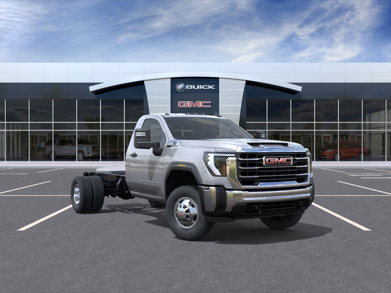 The 2026 GMC Sierra 3500 HD Chassis Cab Pro features a 6.6L Duramax Turbo-Diesel V8 engine paired with a 10-speed automatic transmission. This heavy-duty truck is designed for towing and hauling, with a chassis cab body and four wheel drive. The Sterling Metallic exterior is complemented by a Jet Black interior. This vehicle offers advanced safety features, a comfortable cabin, and the capability to handle even the toughest tasks.