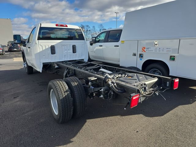 Summit White 2026 GMC Sierra 3500 High-Drive. The vehicle features a 6.6L V8 engine and is equipped with a variety of safety and technology features. The Sierra 3500 HD Chassis Cab offers heavy-duty capability with a 6.6L V8 gas engine and 10-speed automatic transmission. This vehicle is designed for both work and comfort, providing a spacious interior with vinyl seat trim and advanced infotainment.