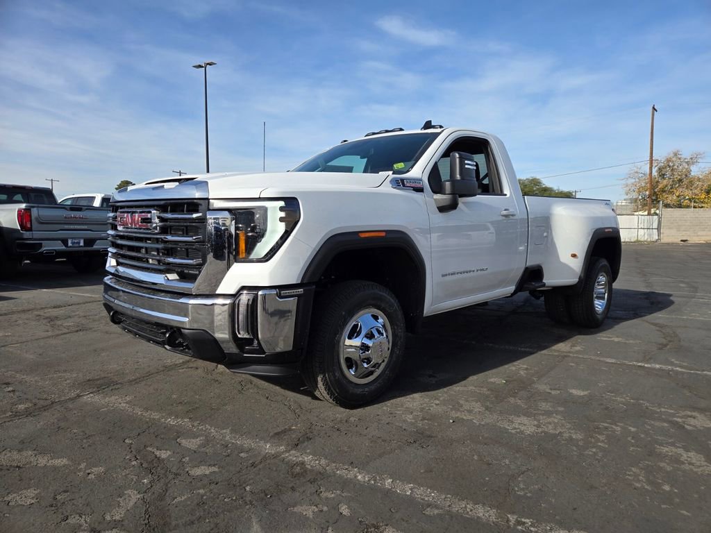 The 2026 GMC Sierra 3500 HD SLE features a 6.6L Duramax Turbo-Diesel V8 engine paired with a 10-speed automatic transmission. This heavy-duty truck is equipped with premium features such as a 13.4" GMC Premium Infotainment System with Google built-in, dual-zone automatic climate control, and a 10-way power driver seat with manual power lumbar. The Summit White exterior is complemented by the manufacturer to provide the best match for the price.