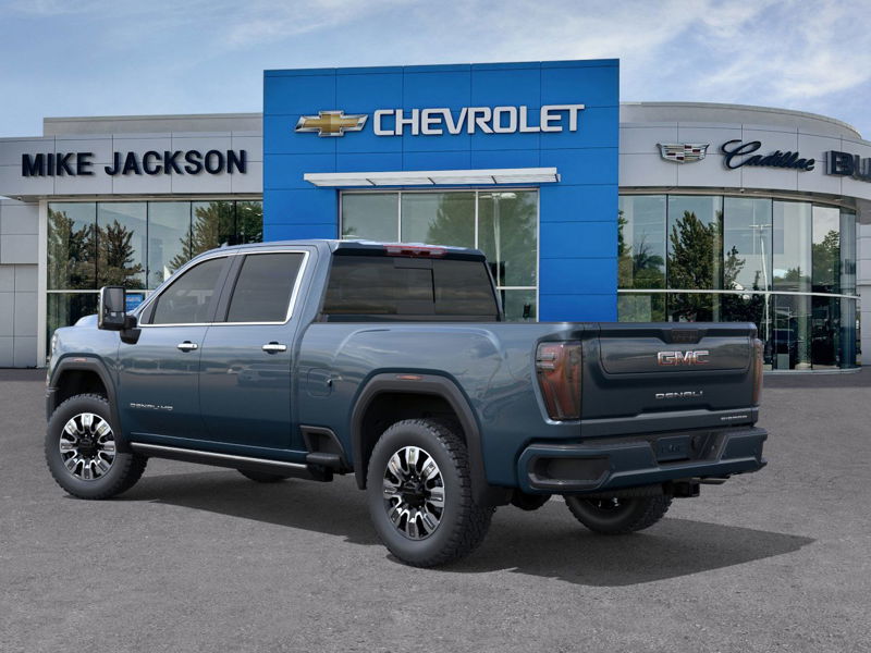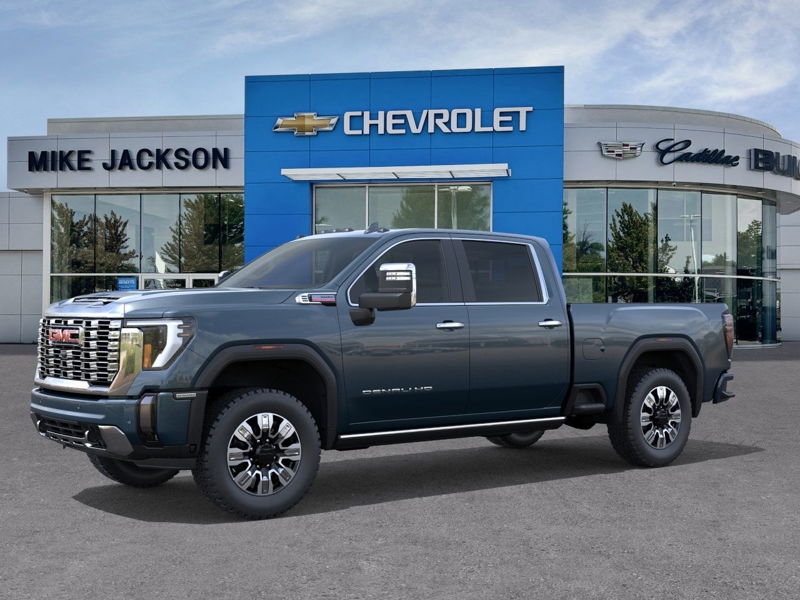 In Transit. Sierra 2500 Denali Crew Cab. This new GMC Sierra 2500HD Denali features a Turbocharged Diesel V8 6.6L engine, Downpour Metallic exterior, and H2X Jet Black interior. The vehicle is currently in transit to Mike Jackson GM in Collingwood, ON. Please contact the dealer for full details and confirmation of prices, colors, trims, options, and other specifications.
