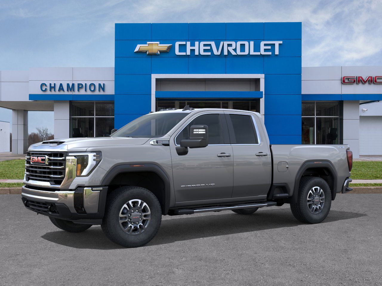 GMC Sierra 2500HD SLE, Double Cab, 6.6L V8, 10-Speed Automatic, 4WD, Sterling Metallic, Black Cloth, 10-Way Power Driver Seat Adjuster with Lumbar, 120-Volt Bed Mounted Power Outlet, 120-Volt Instrument Panel Power Outlet, 4-Wheel Disc Brakes, 6-Speaker Audio System Feature, A/C with Dual-Zone Automatic Climate Control, ABS brakes, All-Weather Floor Liners, Apple CarPlay/Android Auto, Assist Step and Floor Liner Package, Dual front impact airbags, Dual front side impact airbags, Electric Rear-Window Defogger, Emergency communication system: OnStar, Front anti-roll bar, Front wheel independent suspension, Fully automatic headlights, Heated door mirrors, Heated Driver and Front Outboard Passenger Seats, Heated Steering Wheel, IntelliBeam Automatic High Beam on/Off, Keyless Open and Start, LED Fog Lamps, LED Smoked Amber Roof Marker Lamps, Low tire pressure warning, Manual Tilt-Wheel/Telescoping Steering Column, Occupant sensing airbag, Overhead airbag, Radio: AM/FM Stereo with Premium GMC Infotainment System, Remote Start Package, Remote Vehicle Starter System, SiriusXM with 360L Trial Subscription, SLE Convenience Package, SLE Heated Package, SLE Value Package, Spray-on Pickup Bedliner with GMC Logo, Suspension Package, Unauthorized Entry Theft-Deterrent System. Final pricing meets all qualifications to receive incentives. Contact dealer for details. Internet price does not include tax, license, and dealer installed options. Internet price must be presented to sales consultant prior to purchase to receive any advertised price, special price or online price. See sales department for complete details. Prior sales are excluded. Doing Business with Quality, Value and Integrity..... Let Us Show You Why..... No One Beats A Champion! Proudly serving: LaGrange, Louisville, Shelbyville, Simpsonville, Frankfort, Elizabethtown, Carrollton, Sparta, Lexington, Georgetown, Clarksville, Jeffersonville, Madison, Crestwood, Cincinnati, and all of greater Kentucky, Indiana, and Ohio.