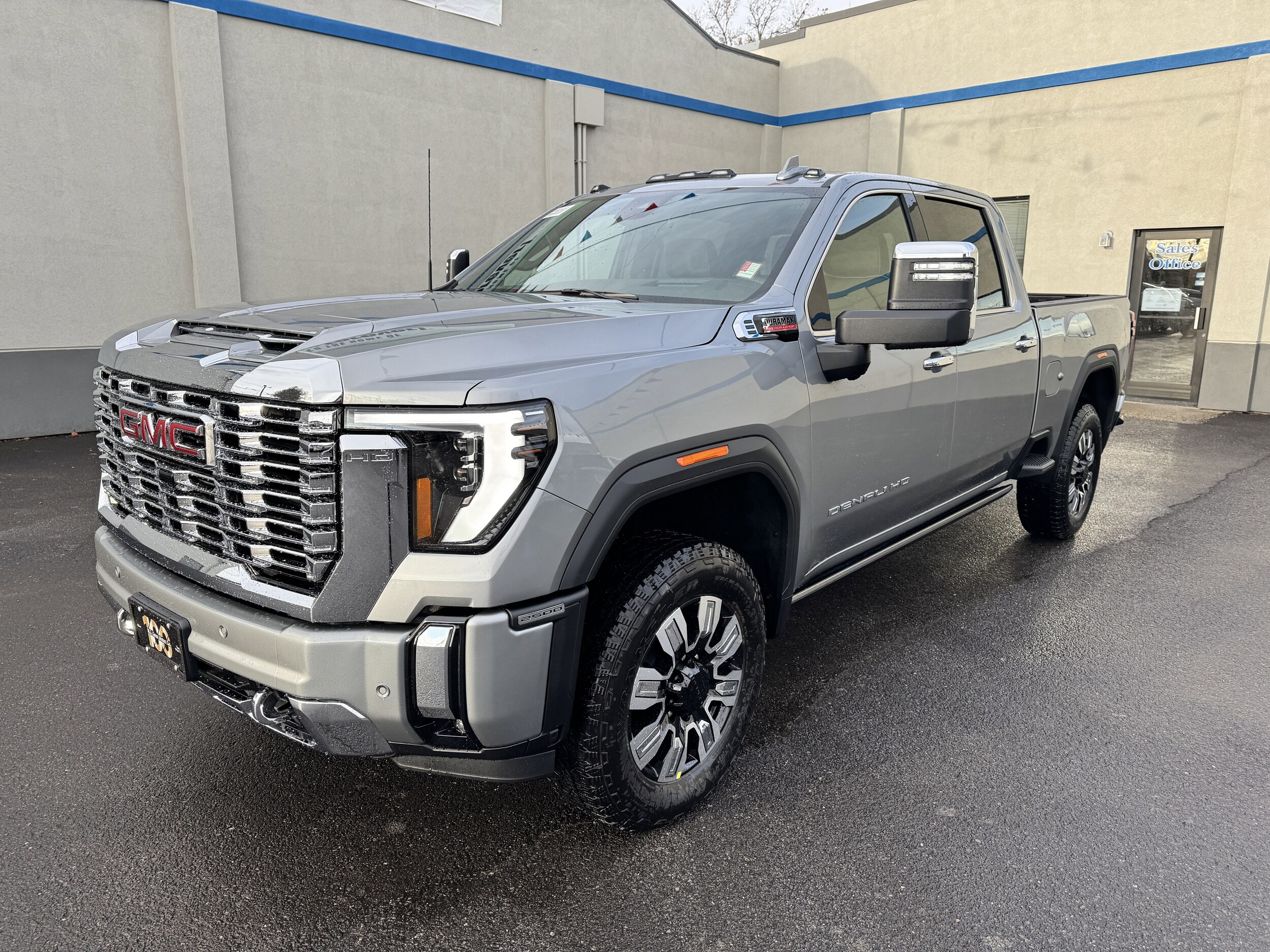 Sierra 2500 HD Crew Cab Denali. On the Lot at MJ Goss Motor Co. This new 2026 GMC Sierra 2500 HD Denali features a 6.6L Duramax Turbo-Diesel V8 engine, premium interior with Atmosphere/Brownstone seating and Forge perforated leather, and a range of advanced technology and safety features. The truck is equipped with a 10-speed automatic transmission, 4WD drivetrain, and a host of comfort and convenience options for both driver and passengers.