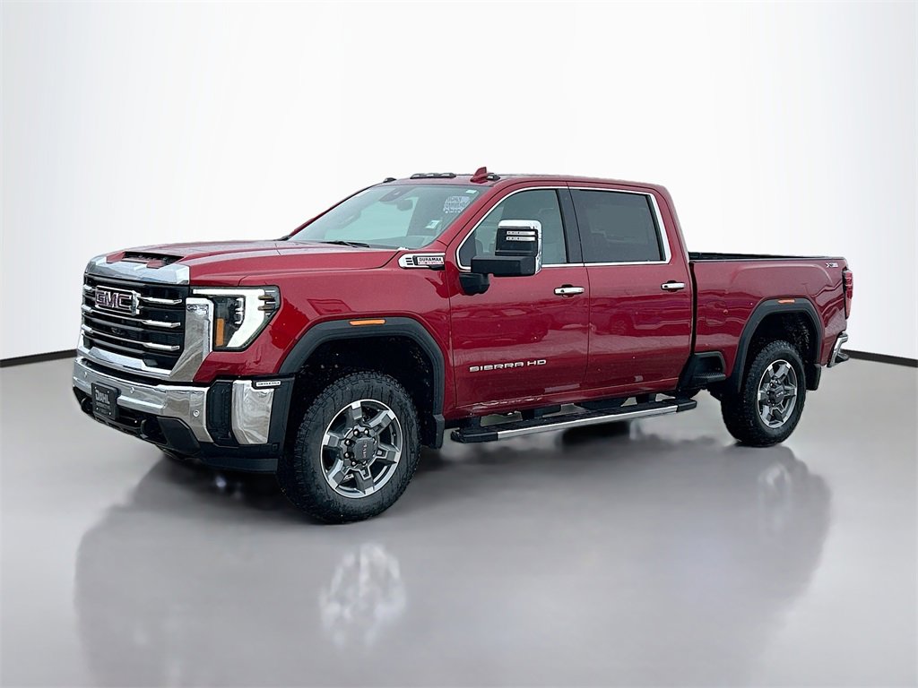 2026 Volcanic Red GMC Sierra 3500HD SLT Duramax 6.6L V8 Turbodiesel 4WD. For sale at DAHL Chevrolet Buick GMC in Winona Minnesota. The standout features for this GMC Sierra 3500HD are.