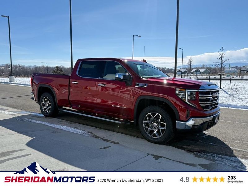 Ready for work and weekend adventure, this 2026 GMC Sierra 1500 SLT with 4WD and the efficient 6-cylinder 3.0L diesel delivers power, towing capability, and exceptional fuel economy. Located in Sheridan, WY, this GMC Sierra pairs rugged capability with upscale comfort and cutting-edge tech, and it's priced to be the best value in the area. Key features include Android Auto for seamless smartphone integration, premium leather seats for long-distance comfort, and a BOSE stereo with XM Radio for rich audio quality on every drive. A heated steering wheel keeps you comfortable during cold Sheridan mornings, while the spacious cabin and refined materials make every trip enjoyable. The GMC Sierra 1500 SLT combines durable construction and advanced towing features—ideal for hauling trailers, gear, or cargo across Wyoming terrain. Safety and convenience options enhance daily usability, and the diesel powerplant offers strong low-end torque for confident passing and towing. This 2026 GMC Sierra 1500 SLT in Sheridan, WY is competitively priced to be the best deal available. Contact us today to schedule a test drive and experience the performance, comfort, and technology that make this GMC Sierra the smart choice for drivers who demand capability and refinement.