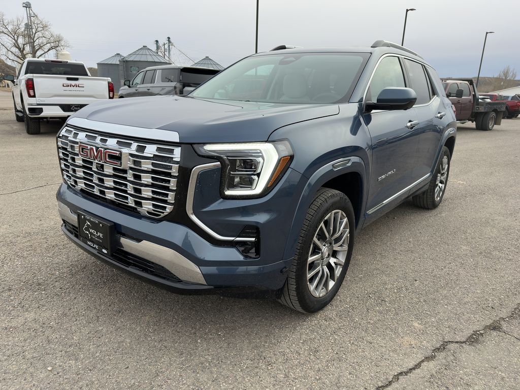 The 2026 GMC Terrain Denali offers a smooth and connected ride with its all-wheel drive system paired to an 8-speed automatic transmission. The interior features a light ash gray with very dark atmosphere design, perforated leather-appointed seat trim, and advanced technology including a 15" GMC Premium Infotainment System with Google built-in. The vehicle is equipped with a 1.5L Turbo 4-cylinder engine, dual-zone automatic climate control, heated and ventilated front seats, heated rear outboard seats, and a host of safety features for added peace of mind.
