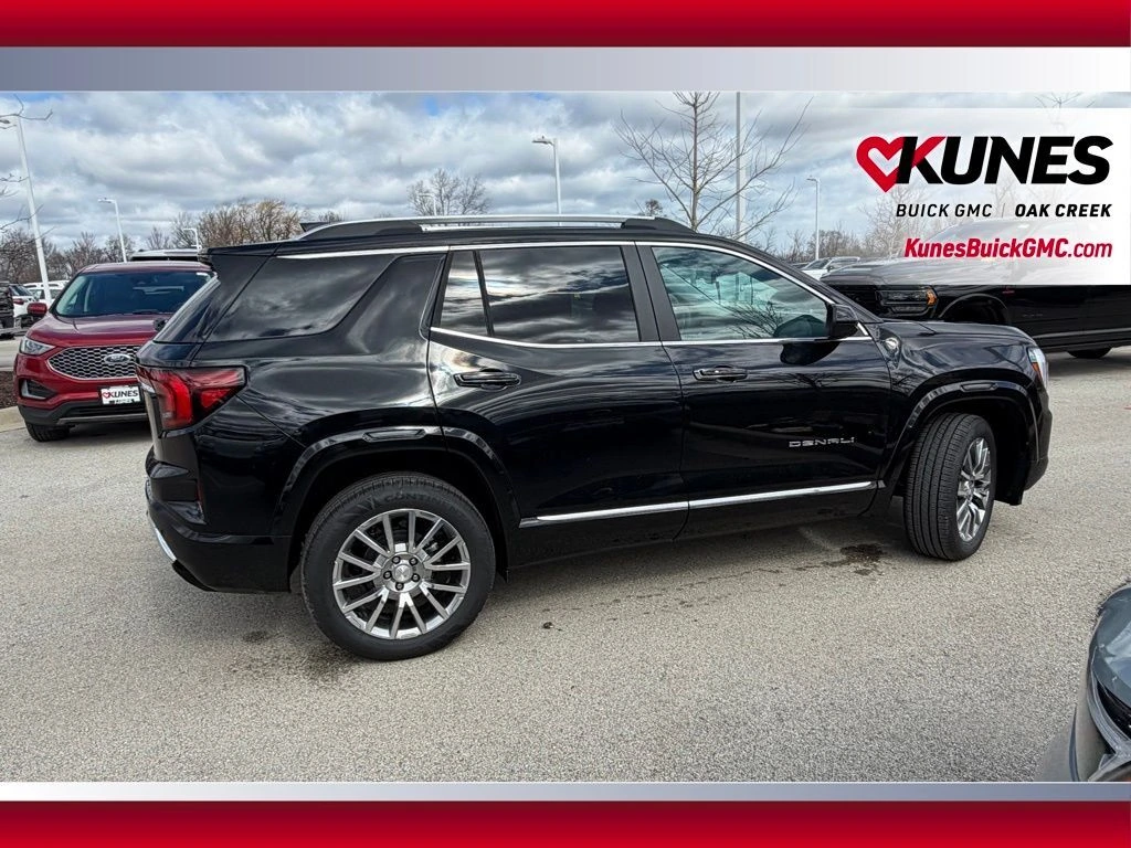 Discover the perfect blend of sophistication and capability with the 2026 GMC Terrain Denali, finished in a stunning Ebony Twilight Metallic exterior. Designed for those who appreciate refined luxury and robust performance, this SUV stands out wherever your journey takes you. Step inside and experience the elegant After Dark interior that complements the SUV's luxurious appearance. With seating designed for comfort, you’ll enjoy every drive, whether it's a short commute or a cross-country adventure. Enjoy added value with every new vehicle purchase at Kunes Buick GMC of Oak Creek, including our exclusive Lifetime "No Fear" Warranty and the convenience of your first oil change on us. Plus, take advantage of at home courtesy delivery, making your car-buying experience as smooth and stress-free as possible. Come and visit us in Oak Creek, Wisconsin, and see firsthand why we've been named DealerRater.com Dealer of the Year 10 times. Our friendly sales professionals are ready to assist you, so call, email, or live chat with us to schedule your test drive today. Whether you're ready to brave Wisconsin winters or simply looking for a reliable, stylish ride around Milwaukee County, the 2026 GMC Terrain Denali is your answer.