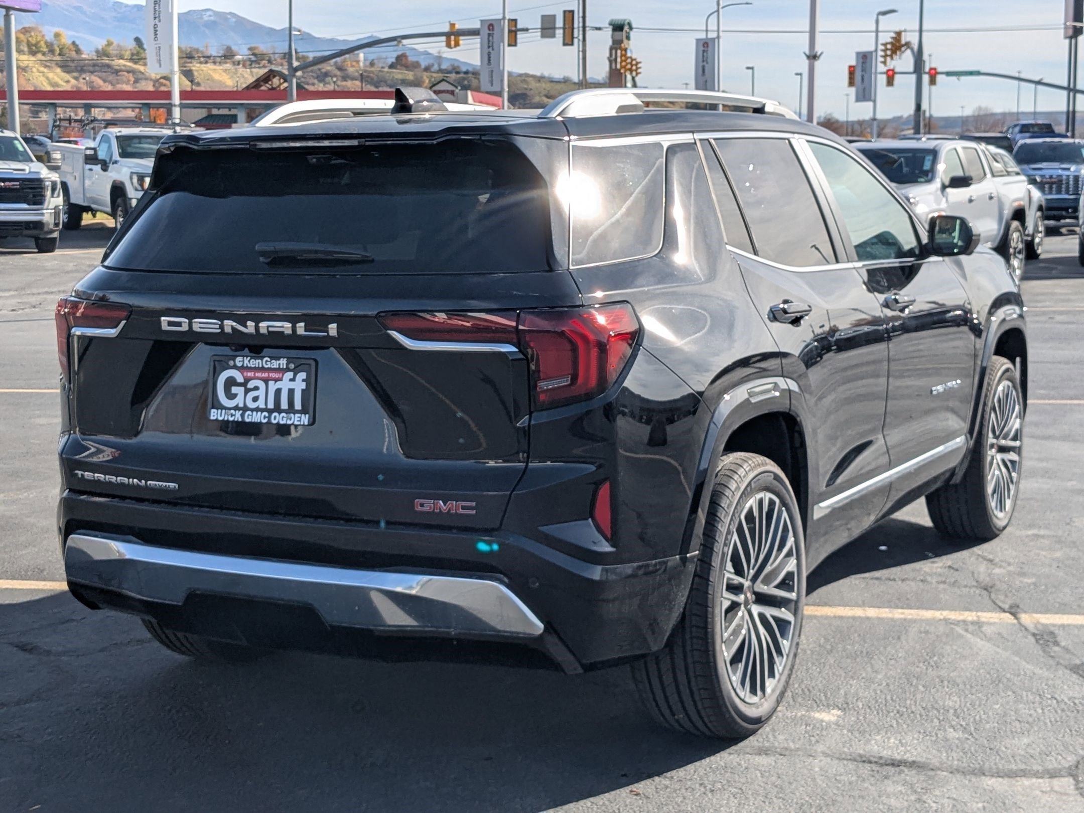 All customers receive free Garff care! Includes free roadside assistance such as jumping a dead battery, towing, unlocking your vehicle, fuel if you run out of gas, complimentary car washes, and flat tire repair! DealerRater Dealer of the Year! Exclusive 60 minute buying experience! 2026 GMC Terrain Denali AWD Ebony Twilight Metallic 1.5L DOHC AWD, 2-Way Power Driver Lumbar Seat Adjuster, 3.47 Final Drive Axle Ratio, 4-Wheel Disc Brakes, 6 Speakers, 6-Speaker Audio System Feature, 8-Way Power Driver Seat Adjuster, ABS brakes, Air Conditioning, Alloy wheels, AM/FM radio: SiriusXM, Auto High-beam Headlights, Automatic temperature control, Brake assist, Bumpers: body-color, Compass, Delay-off headlights, Driver & Front Passenger Heated Seats, Driver door bin, Driver vanity mirror, Dual front impact airbags, Dual front side impact airbags, Electronic Stability Control, Emergency communication system: OnStar and GMC connected services capable, Four wheel independent suspension, Front anti-roll bar, Front Bucket Seats, Front Center Armrest, Front dual zone A/C, Front fog lights, Front reading lights, Fully automatic headlights, Garage door transmitter, Heated door mirrors, Heated front seats, Heated rear seats, Heated steering wheel, Illuminated entry, Low tire pressure warning, Memory seat, Navigation System, Occupant sensing airbag, Outside temperature display, Overhead airbag, Overhead console, Panic alarm, Passenger door bin, Passenger vanity mirror.