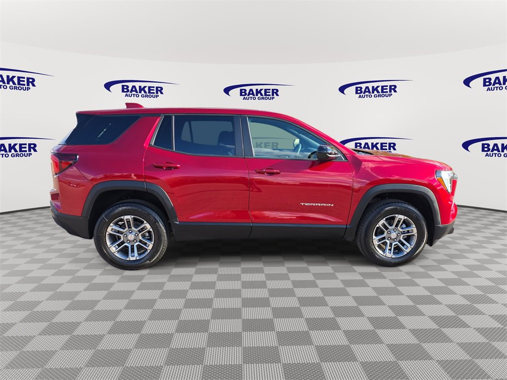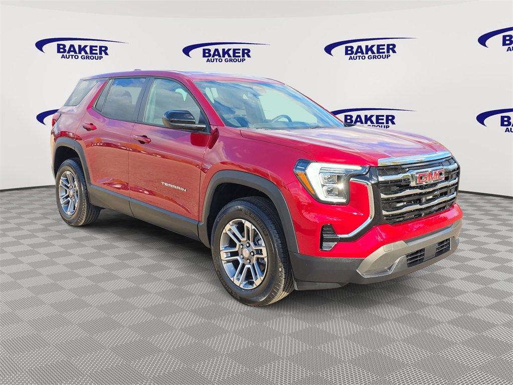 Volcanic Red Tintcoat 2026 GMC Terrain Elevation AWD 8-Speed Automatic with Overdrive 1.5L DOHC Terrain Elevation, 4D Sport Utility, 1.5L DOHC, 8-Speed Automatic with Overdrive, AWD, Volcanic Red Tintcoat, Cloth, Navigation System. 24/28 City/Highway MPG.