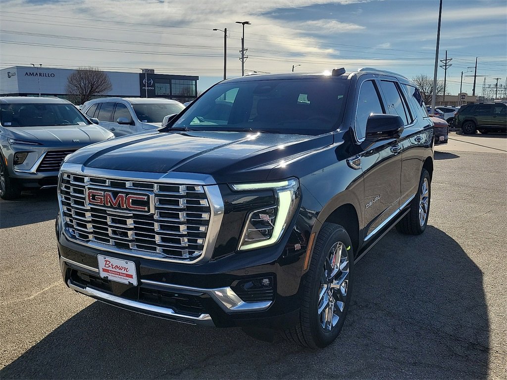 2026 Onyx Black GMC Yukon Denali 4WD 10-Speed Automatic with Overdrive EcoTec3 6.2L V8 This GMC Yukon has many features and is well equipped including, Collision Avoidance System, Active Parking Assist, 360 degree Camera, Adaptive Cruise Control, Leather Seats, Heated and Cooled Seats, Blind-Spot Monitors, Lane Keeping Assist, Navigation System, Adaptive Headlights, Touchscreen Controls, Heads-Up Display, Backup Camera, Keyless Access with Push Button Start, Automatic Headlights, Apple CarPlay, Android Auto, Voice Recognition, Bluetooth Hands-Free, Wi-Fi Hotspot, Multi Zone Climate Control. 6 Months or 6,000 miles additional comprehensive coverage & 7 Year or 100,000 miles Powertrain on every new car! Thank you for taking the time to look at this wonderful 2026 GMC Yukon. If you're tired of other Amarillo car dealerships treating you poorly, come see us. We know there is nothing worse than dealing with rude salespeople, which is why we take a softer approach. We don't like to use high-pressure sales tactics, and we treat each and every customer who sets foot on our lot with respect. If you're seeking a relaxed car buying experience in Amarillo or anywhere in the Texas panhandle, come see the Brown Automotive Group!