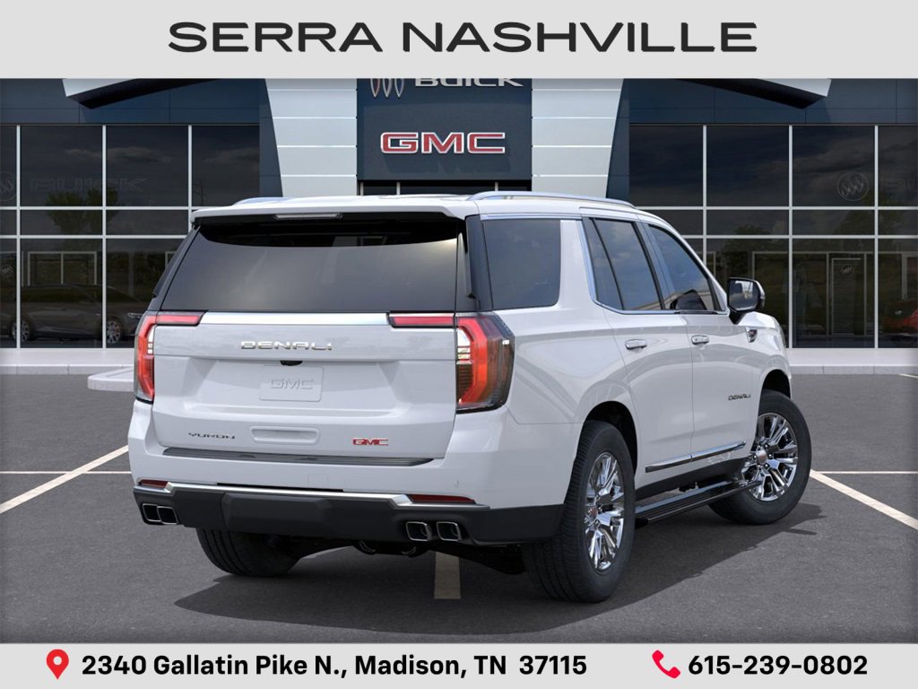 2026 GMC Yukon Denali For sale at Serra GMC Nashville - Serra Nashville has the largest selection of the new GMC Yukon in Nashville. This vehicle is Glacier White Tricoat and well equipped with Floor Liner Package (3rd Row All-Weather Floor Liners, All-Weather Cargo Mat, and First and Second Rows Premium Floor Liners), 4WD, 10 Speakers, 15 Diagonal Multi-Color Head-Up Display, 3 Years OnStar One, 3rd row seats: split-bench, 4-Way Power Driver Lumbar Seat Adjuster, 4-Way Power Front Passenger Lumbar Seat Adjuster, 4-Wheel Disc Brakes, ABS brakes, Adaptive suspension, Air conditioning, Alloy wheels, AM/FM radio SiriusXM with 360L, Apple CarPlay/Android Auto, etc. If you're shopping for a new or used a vehicle near Nashville, look no further than Serra GMC Nashville. Visit your local car dealer in Madison.