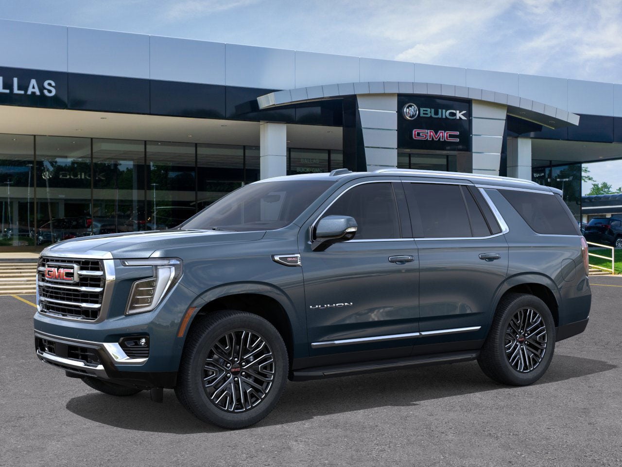 The 2026 GMC Yukon Elevation 4WD is in transit to Ballas Buick GMC. Please check with the dealer to confirm vehicle availability. The Yukon Elevation features a 5.3L V8 engine, advanced technology, and a comfortable interior with Coretec/Perforated Leather-Appointed seating. The vehicle is designed for both comfort and capability, offering trailering equipment, premium suspension, and enhanced safety features. For the most up-to-date information, see the window sticker or contact the dealer.