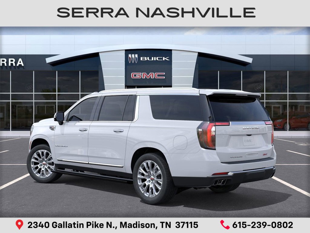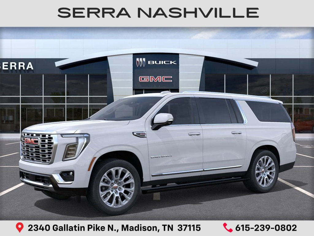 2026 GMC Yukon XL Denali For sale at Serra GMC Nashville - Serra Nashville has the largest selection of the new GMC Yukon XL in Nashville. This vehicle is Glacier White Tricoat and well equipped with Advanced Security Package (Glass Breakage Sensor, Theft-Deterrent Alarm System, Vehicle Inclination Sensor, and Vehicle Interior Movement Sensor), Advanced Technology Package (3 Years OnStar One, Driver Attention Assist, Inside Rearview Auo-Dimming Rear Camera Mirror, Rear Seat Media System, and Super Cruise), Denali Reserve Package (Dual-Pane Panoramic Power Sunroof and Power-Retractable Assist Steps), Enhanced Trailering Technology Package (Trailer Camera Provisions, Trailering Assist Guidelines, and Wired Auxiliary Trailer Camera), Floor Liner Package (3rd Row All-Weather Floor Liners, All-Weather Cargo Mat, and First and Second Rows Premium Floor Liners), Max Trailering Package (Blind Zone Steering Assist with Trailering, Extra Capacity Cooling System, Hill Descent Control, Hitch View, Integrated Trailer Brake Controller, and Smart Trailer Integration Indicator), Preferred Equipment Group 5SA (15 Diagonal Multi-Color Head-Up Display, 4-Way Power Driver Lumbar Seat Adjuster, 4-Way Power Front Passenger Lumbar Seat Adjuster, AutoSense Hands-Free Power Liftgate, Bright Front and Rear Door Sill Plates, Dual Exhaust System, Galvano Bodyside Moldings, Magnetic Ride Control Suspension, Perforated Heather and Ventilated Driver and Front Passenger Seats, Power Release 2nd Row Bucket Seats, Power Tilt and Telescopic Steering Column, and Wheels: 20 x 9 6-Spoke Polished Aluminum).