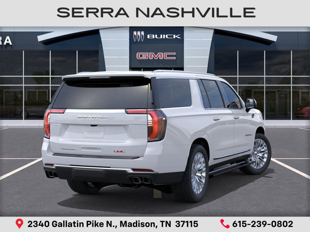 2026 GMC Yukon XL Denali For sale at Serra GMC Nashville - Serra Nashville has the largest selection of the new GMC Yukon XL in Nashville. This vehicle is Summit White and well equipped with Advanced Security Package (Glass Breakage Sensor, Theft-Deterrent Alarm System, Vehicle Inclination Sensor, and Vehicle Interior Movement Sensor), Advanced Technology Package (3 Years OnStar One, Driver Attention Assist, Inside Rearview Auo-Dimming Rear Camera Mirror, Rear Seat Media System, and Super Cruise), Denali Reserve Package (Dual-Pane Panoramic Power Sunroof and Power-Retractable Assist Steps), Enhanced Trailering Technology Package (Trailer Camera Provisions, Trailering Assist Guidelines, and Wired Auxiliary Trailer Camera), Floor Liner Package (3rd Row All-Weather Floor Liners, All-Weather Cargo Mat, and First and Second Rows Premium Floor Liners), Max Trailering Package (Blind Zone Steering Assist with Trailering, Extra Capacity Cooling System, Hill Descent Control, Hitch View, Integrated Trailer Brake Controller, and Smart Trailer Integration Indicator), 4WD, 10 Speakers, 15 Diagonal Multi-Color Head-Up Display, 3rd row seats: split-bench, 4-Way Power Driver Lumbar Seat Adjuster, 4-Way Power Front Passenger Lumbar Seat Adjuster, 4-Wheel Disc Brakes, ABS brakes, Adaptive suspension, Air Conditioning, Air Ride Adaptive Suspension, Alloy wheels, AM/FM radio: SiriusXM with 360L, Apple CarPlay/Android Auto, Audio memory, Auto High-beam Headlights, Auto-dimming door mirrors, Auto-dimming Rear-View mirror, Auto-leveling suspension, Automatic temperature control, AutoSense Hands-Free Power Liftgate, Bodyside moldings, Bose 10-Speaker Surround with CenterPoint, Brake assist, Bright Front and Rear Door Sill Plates, Bumpers: body-color, Compass, Delay-off headlights, Driver door bin, Driver vanity mirror, Dual Exhaust System, Dual front impact airbags, Dual front side impact airbags, Electronic Stability Control, Emergency communication system: OnStar and GMC connected services capable, Exterior Parking Camera Rear, Four wheel independent suspension, Front anti-roll bar, Front Bucket Seats, Front Center Armrest, Front dual zone A/C, Front fog lights, Front reading lights, Fully automatic headlights, Galvano Bodyside Moldings, Garage door transmitter, Heads-Up Display, Heated door mirrors, Heated Driver and Front Passenger Seats, Heated front seats, Heated rear seats, Heated steering wheel.